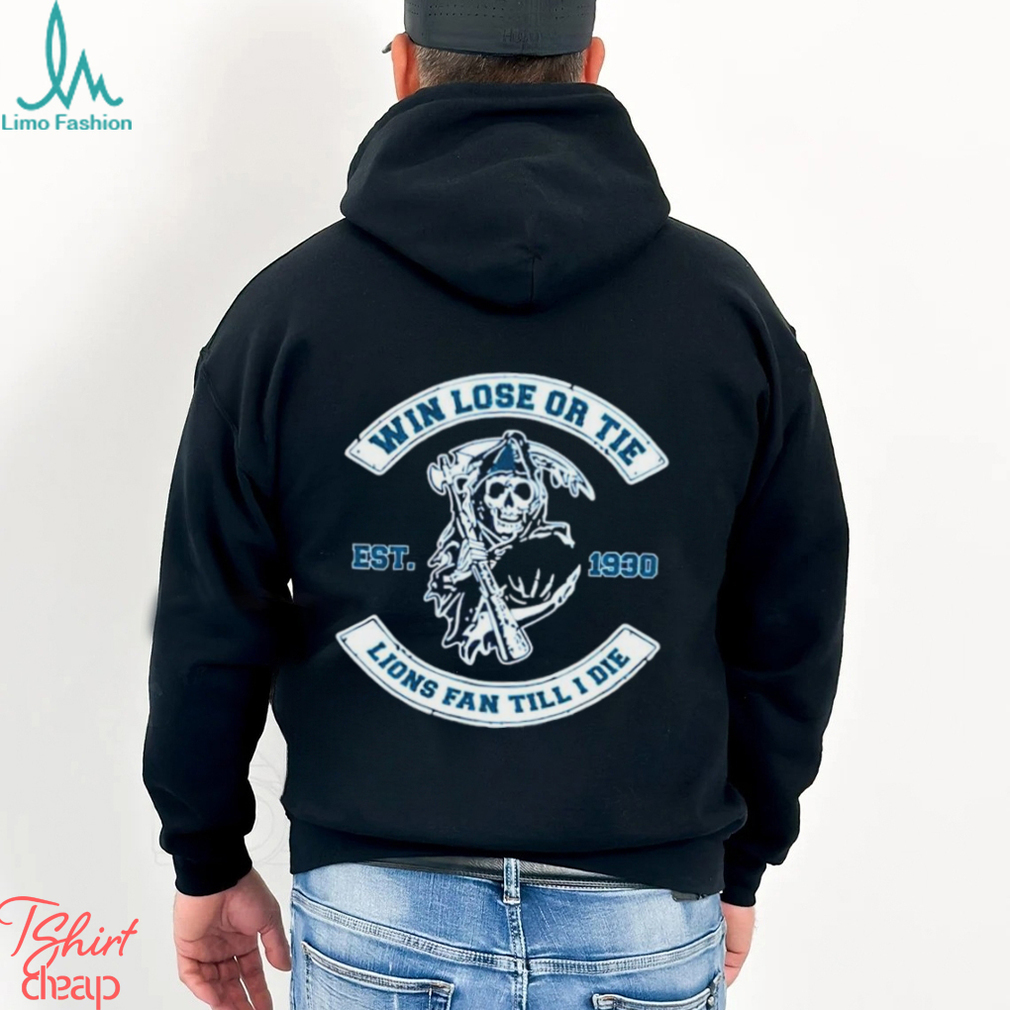 Detroit Lions win lose or tie Lions fan till I die shirt hoodie, tank top, sweater and long sleeve t-shirt