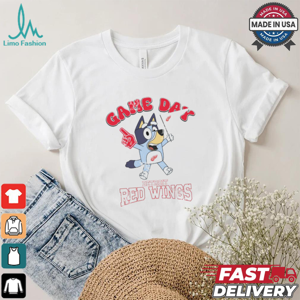 The Detroit Red Wings Bluey Game Day shirt to answering your question is experience. We exist to experience; we know we exist because we experience our own existence. The second key is observation. We observe our existence, our experience. We witness, record, and reflect upon our experience. The third key is intention. From observations of our experiences, we build a theory of “reality”, and make choices to act or not act based on that theory. We form an intention to create a specific experience that we want to observe. Now we have a sufficient solution to the problem. Experience, observation, and intention together create reality. They cannot exist without each other. None is more fundamental than the other, and none can be removed without destroying the others. Experience, observation, and intention: the grand experiment. We exist to try things, experience them, and observe the result. There is no meaning beyond that; when we are gone, all those things are gone too. We should use the little time we have to make as many experiments as possible. We have been blessed with the opportunity to experience, observe, and intend, and we should not waste it.