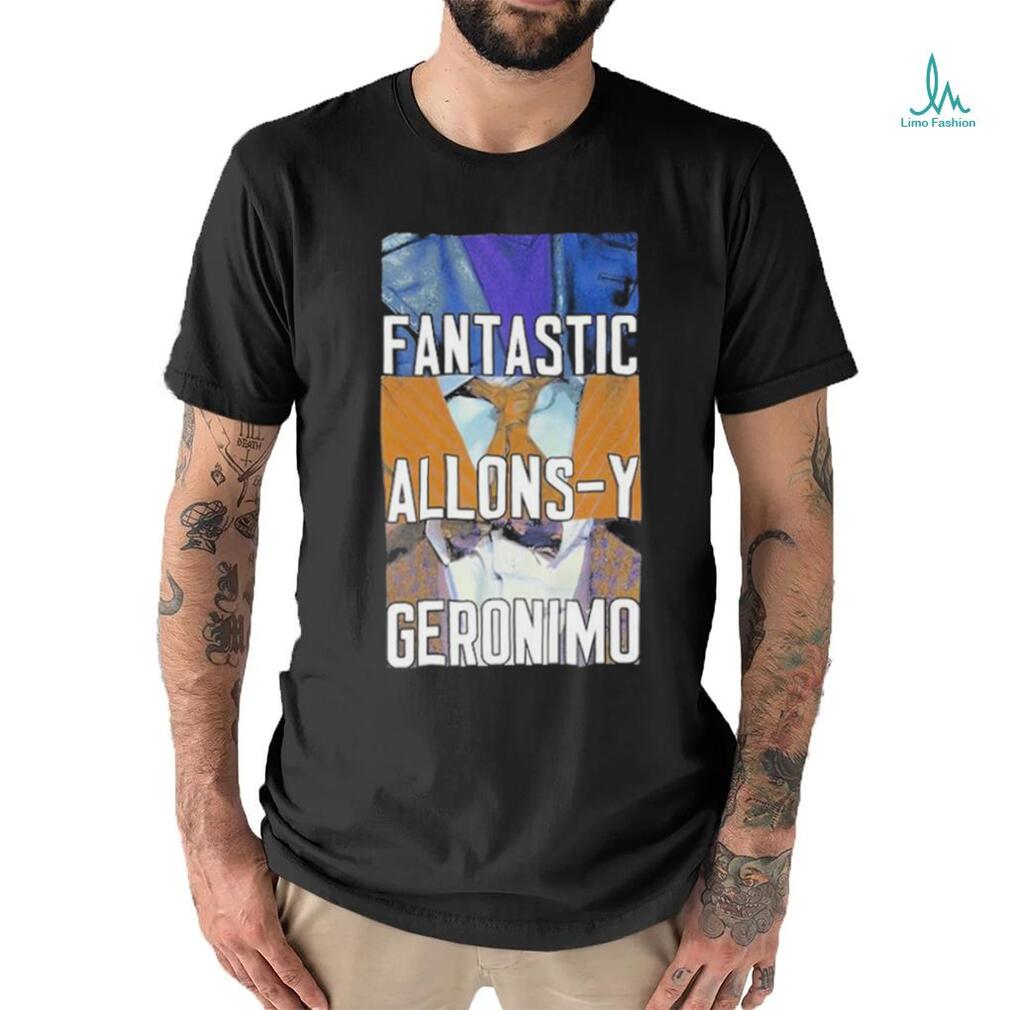 ()Doctor Who Fantastic Allons Y Geronimo Shirt. Categories of this T-shirt is teejeep, Doctor Who Fantastic Allons Y Geronimo Shirt from Dadyshirt ✓ Unique designs ✓ Large assortment ✓ Comfortable ✓ High-quality ✓ Easy to care for ✓ Available in a range of colours and styles for men, women ✓ Shop now ✓