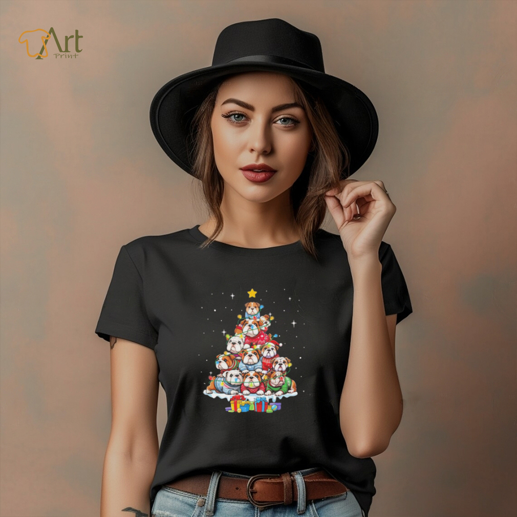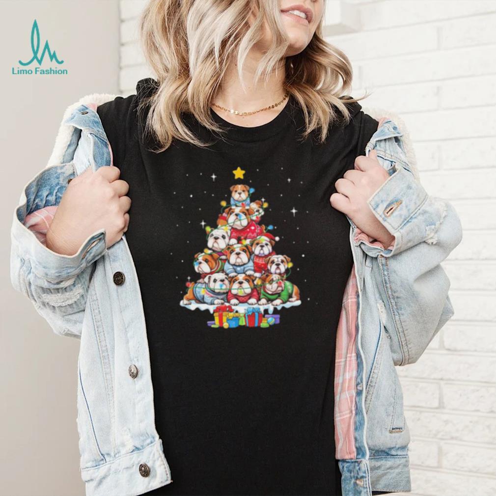 Dogs Bulldog Collie pine tree merry christmas shirt