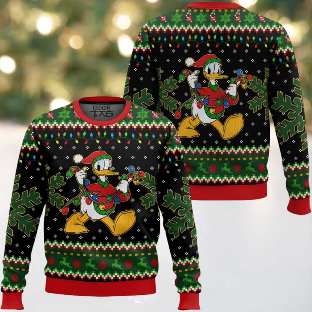 Ever strung up Christmas lights, only to find them tangled, frustrating, and maybe a little… explosive? If that sounds like a typical holiday mishap, and you appreciate a good laugh, then the ‘Donald Duck Christmas Lights Ugly Christmas Sweater’ is a must-have for your festive wardrobe. This isn’t just an ugly Christmas sweater; it’s a hilarious nod to everyone’s favorite hot-headed duck, perfectly blending Disney charm with the chaos of holiday decorating. Get ready to quack up your friends and family and bring a dose of classic cartoon humor to your seasonal celebrations.
