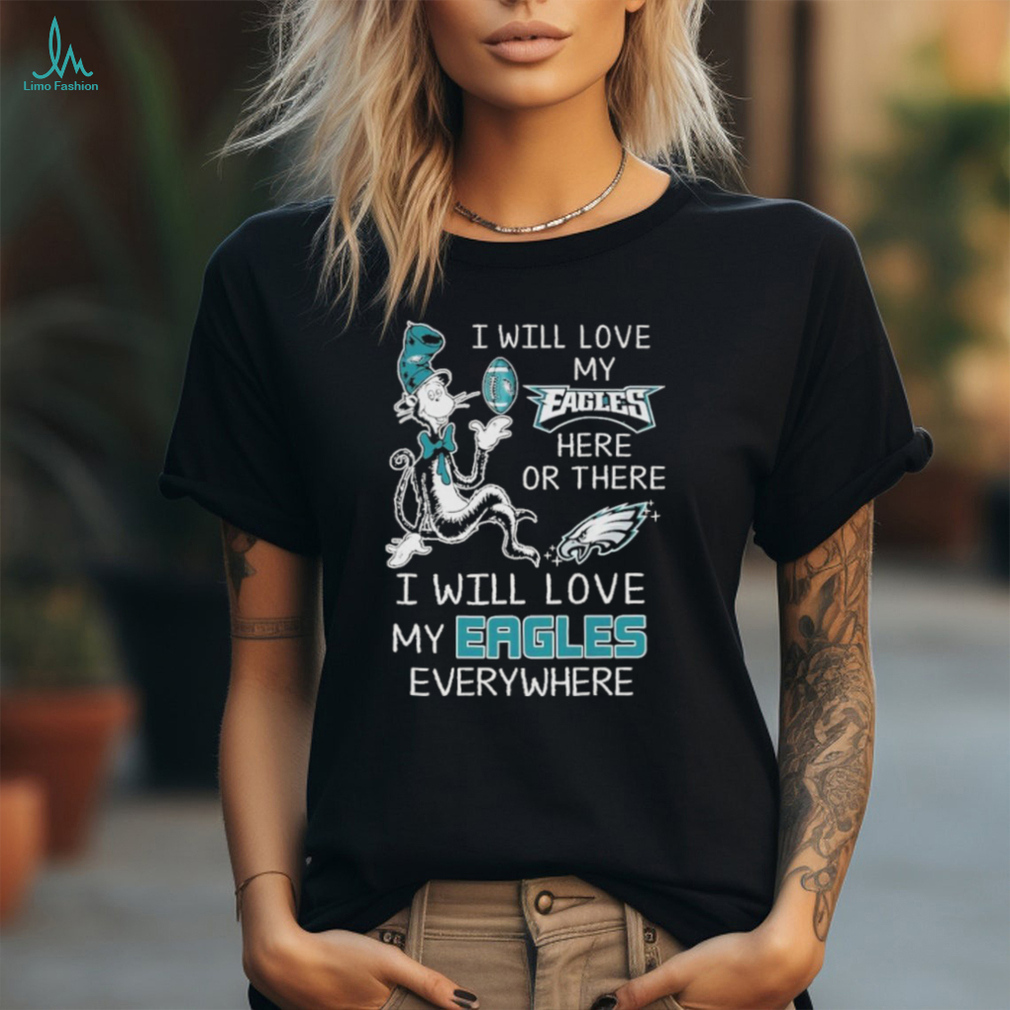 Rugby League may be the easier game to play in terms of learning how, but it has a Dr Seuss I Will Love My Eagles Everywhere 2024 Shirt cardiovascular fitness requirement compared to the NFL — and higher than that of Rugby Union. An NFL game of 60 minutes takes about 3 hours to play, with multiple personel changes. Many NFL players are simply not fit enough to play either Rugby code, where the minimum fitness required is to play 40 minutes straight and a further 20 minutes after a 15 minute half time break. League is especially demanding on fitness because the ball is in play for a higher percentage of that time. From what I’ve seen, a lot of NFL players would require a year of physical conditioning to play rugby to any decent level.