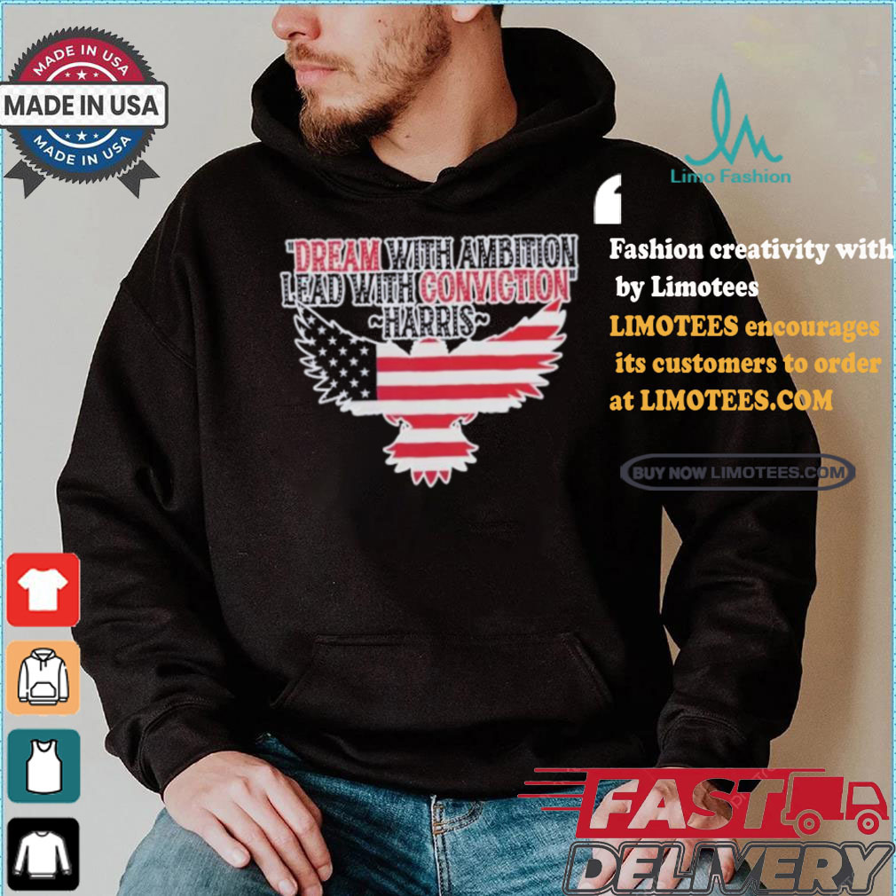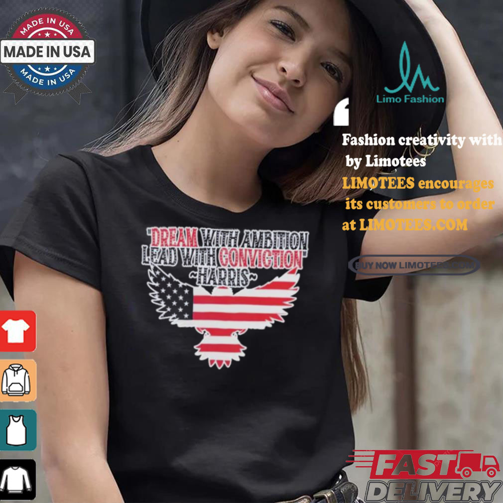 The truckers were speculator and had invested in the Christmas tree to sell to Christmas tree lots so they would have fresh trees. In the past years this had worked out very well, but because of all the Dream With Ambition Lead With Conviction Kamala Harris America Eagle Support For Harris Walz 24 T shirt , no one wanted the tree. They were going to have to pay to bring them to the dump, so they decide to give them away. I asked the cop and the owner if I could find a place for them to move to, would let them go, it is Christmas. They agreed. I phoned the radio station (a long time before cell phones, this was done on a pay phone) I told them what the problem, the trees were free, but they needed some place to put the trees.