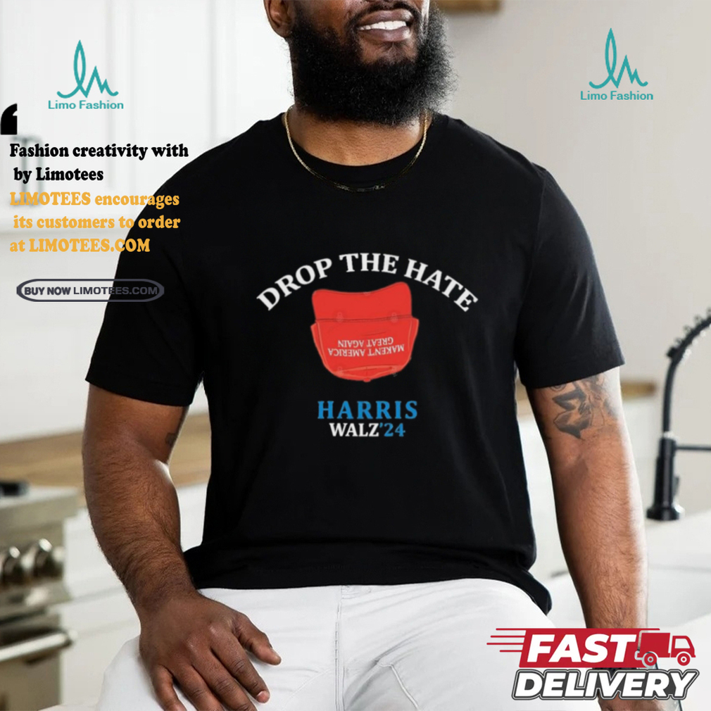 ()Drop the Hate, No MAGA Hat Vote Harris Tim Walz T Shirt, Hoodie, Sweater, Vneck, Unisex and T-shirt