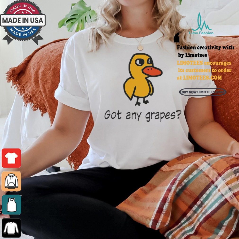 Seriously, dogs. I feel like Duck Got Any Grapes Apparel Shirt just can’t get enough of humans. I was on a trip to a beach several weeks ago, and we met two dogs at the homestay. The dogs greeted us like old pals. They played with us. They were with us all the time. When I was alone on a beach they ran to me and sat next to me, just to be my company. When we left, they jumped into the car- because they wanted to follow us. Even after the car left, they ran after us for a long mile before the car sped up they could not run anymore.