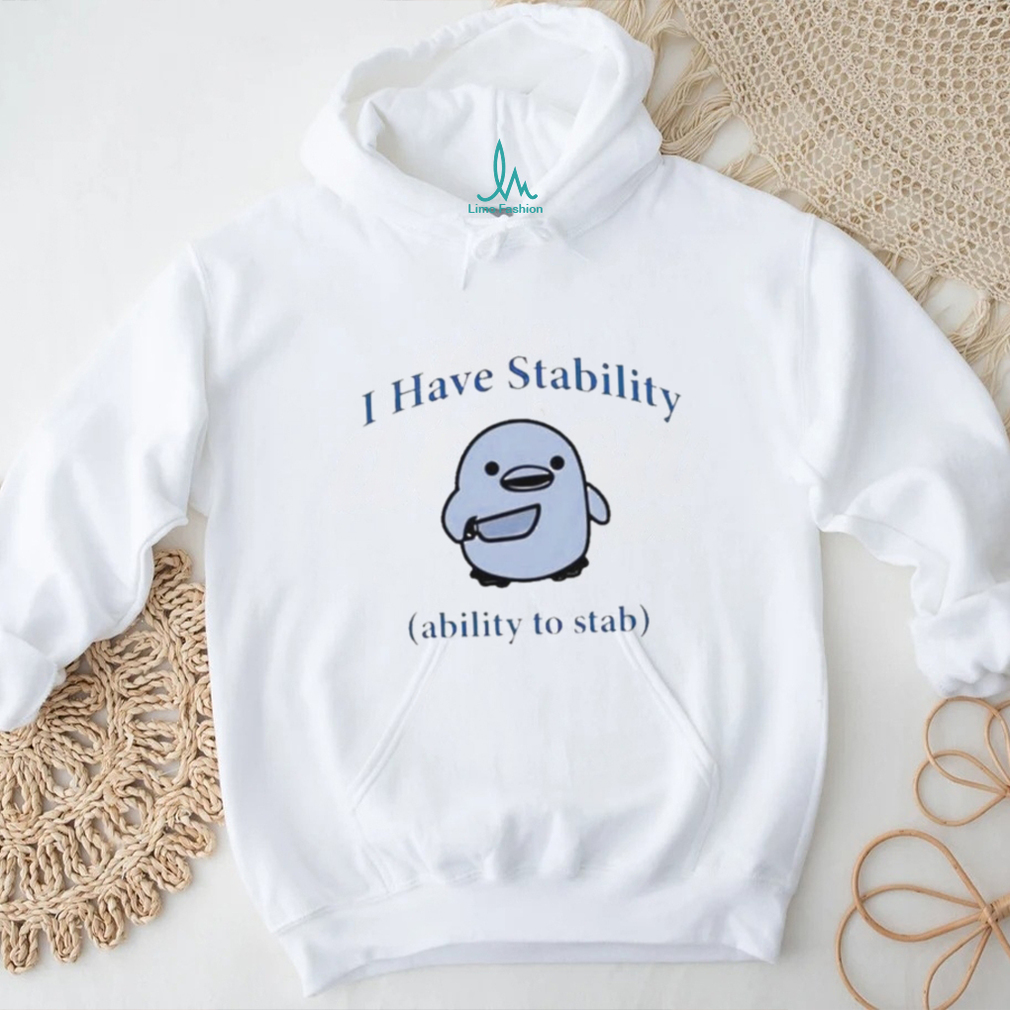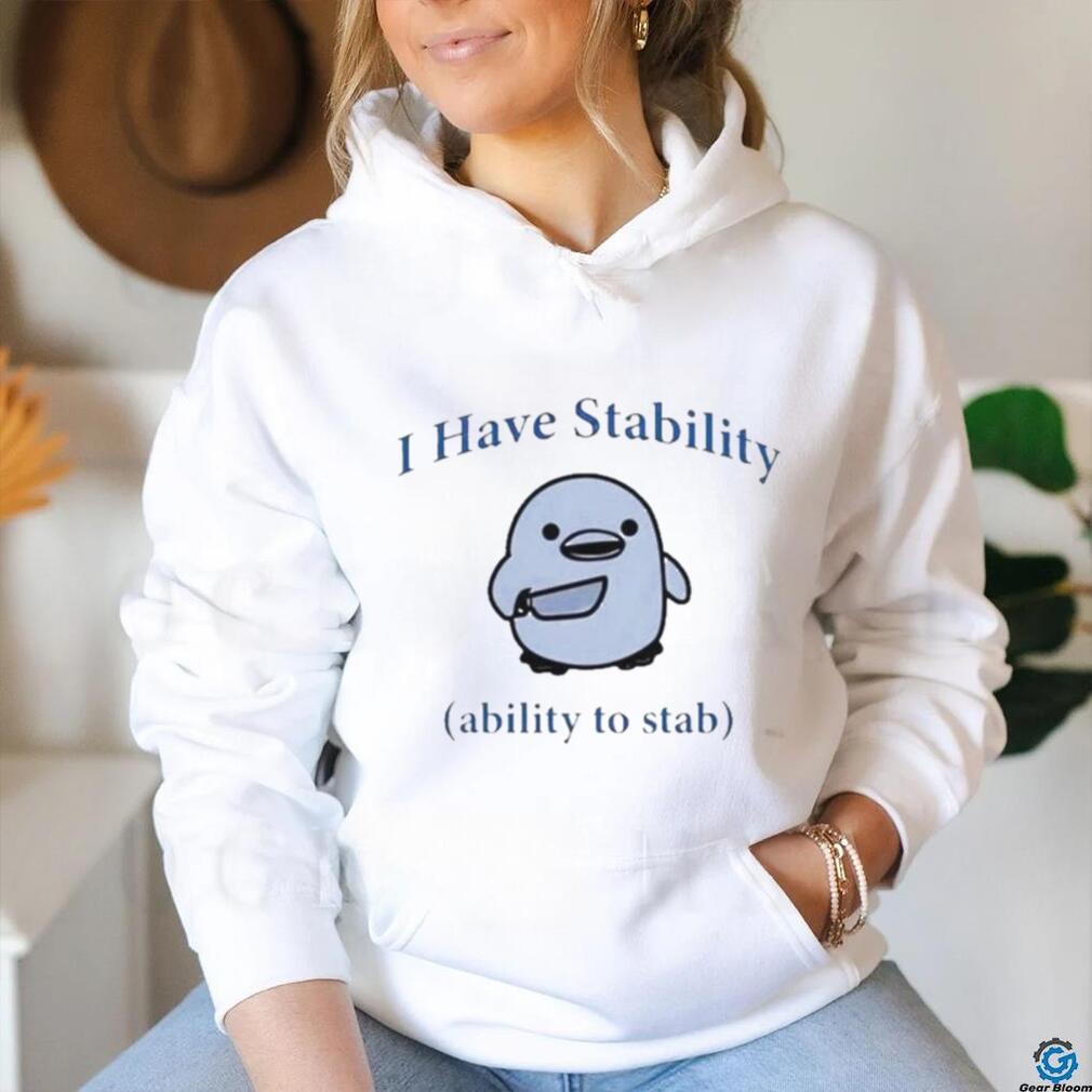 Duck I Have Stability Ability To Stab T Shirt. Categories of this T-shirt is teejeep, Duck I Have Stability Ability To Stab T Shirt from Dadyshirt ✓ Unique designs ✓ Large assortment ✓ Comfortable ✓ High-quality ✓ Easy to care for ✓ Available in a range of colours and styles for men, women ✓ Shop now ✓