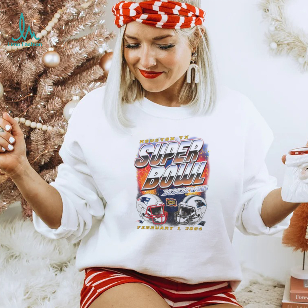The truckers were speculator and had invested in the Christmas tree to sell to Christmas tree lots so they would have fresh trees. In the past years this had worked out very well, but because of all the Dueling Super Bowl XXXVIII New England Patriots vs Carolina Panthers shirt , no one wanted the tree. They were going to have to pay to bring them to the dump, so they decide to give them away. I asked the cop and the owner if I could find a place for them to move to, would let them go, it is Christmas. They agreed. I phoned the radio station (a long time before cell phones, this was done on a pay phone) I told them what the problem, the trees were free, but they needed some place to put the trees.