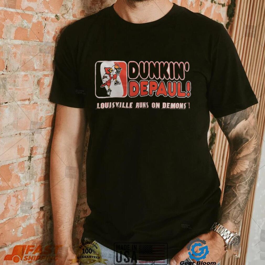 ()Dunkin’ Depaul Louisville runs on demons shirt