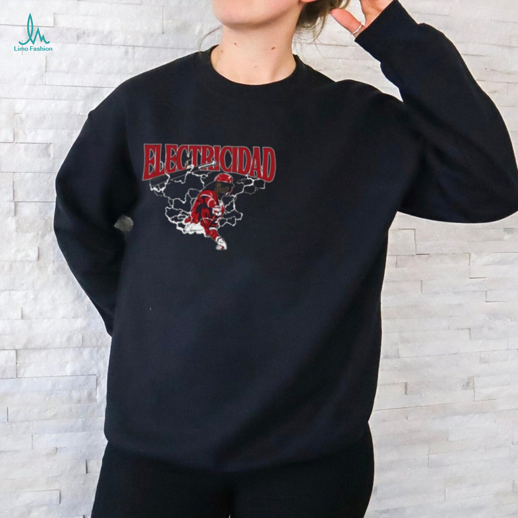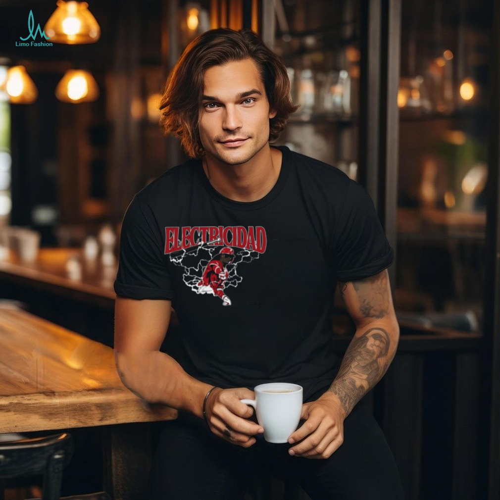 I told her, Well, I just I need to Elly De La Cruz Electricidad 3 4 Sleeve Raglan shirt this one who chose me. She gasped, as the kitten was still holding on to me,patiently waiting. He let the girl get him from the cage and then climbed into my arms and looked at me as if to say, “Well? Come on, let’s go home!” I knew then I was beaten! Less than two minutes looking at cats only to be chosen. Gonzo is a dork and also a very good boy. He was fully accepted by the two adult cats in less than a week. He causes chaos daily in the house. I would not trade him for anything! I think he was so smart to chose the biggest pushover in the room! Below of pictures of him as a kitten and now as an 18 pound force of nature.