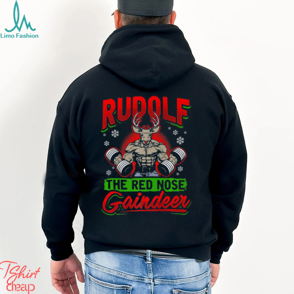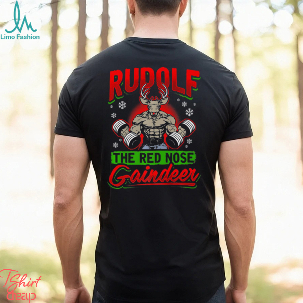 You see, Christmas Eve is really the Fitness Christmas Toned Rudolf Muscle Xmas Shirt when my mom’s sisters and brothers would all gather in South Boston with their kids (My cousins of course.) Since they too were teens like myself back in the day, they all did their own thing on Christmas morning — But the one thing they didn’t want to do was leave their gifts after opening them. So Christmas Eve became more important to us as a whole to come together, celebrate and then visit midnight mass at the local church before going home. By the time I got home, it was after 1am, so I guess it was really Christmas morning if you want to get technical about it. The gifts were promptly opened and I was in bed no later than 3am to sleep most of the morning in peace. Now with two kids of my own, I will be getting up Christmas morning to greet the day and watch their faces. Mainly because Santa Claus is still important to them and he only visits on Christmas Eve when you’re asleep as all know.
