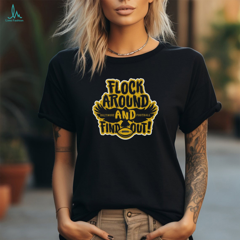 (The Bolshevik) sentinel slowly raised his head. But just at this moment the Flock Around And Find Out Baltimore Football t shirt body of my friend rose up and blanketed the fire from me and in a twinkling the feet of the sentinel flashed through the air, as my companion had seized him by the throat and swung him clear into the bushes, where both figures disappeared. In a second he re-appeared, flourished the rifle of the Partisan over his head and I heard the dull blow which was followed by an absolute calm. He came back toward me and, confusedly smiling, said: “It is done. God and the Devil! When I was a boy, my mother wanted to make a priest out of me. When I grew up, I became a trained agronome in order. . . to strangle the people and smash their skulls? Revolution is a very stupid thing!” And with anger and disgust he spit and began to smoke his pipe.