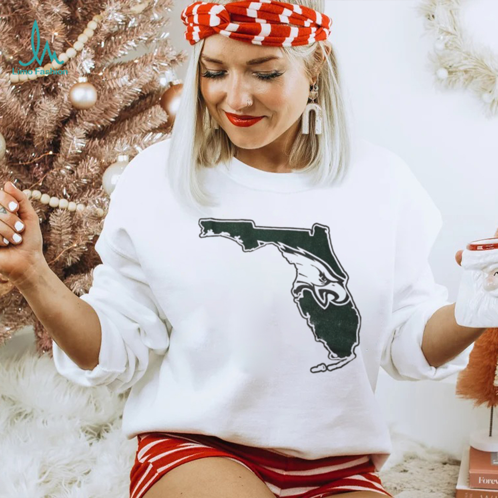 People strung cranberries and popcorn, starched little crocheted stars to hang, made paper chains and Florida bleeds Green Philadelphia Eagles shirt had glass ornaments, usually from Germany, about two inches wide, they would get old and lose their shine. There was real metal tinsel too, that you could throw on with the argument about single strands and clumps. Each side had it’s followers. In the fifties various lights were a big deal, with bubble lights, that had bubbles in the candle portion that moved when plugged in. There were big primary colored lights strung around the tree too, nothing small or ‘tasteful’ Christmas trees were meant to be an explosion of color and light. I took Styrofoam balls and a type of ribbon that would stick to itself when wet, and wrapped the balls, and then used pins to attach sequins and pearls for a pretty design in the sixties. I also cut ‘pop-it’ beads meant for a necklace into dangling ornaments with a hook at the top to put it on the tree. Wrapped cut-up toilet paper tubes in bright wools too. Kids still remember making those.