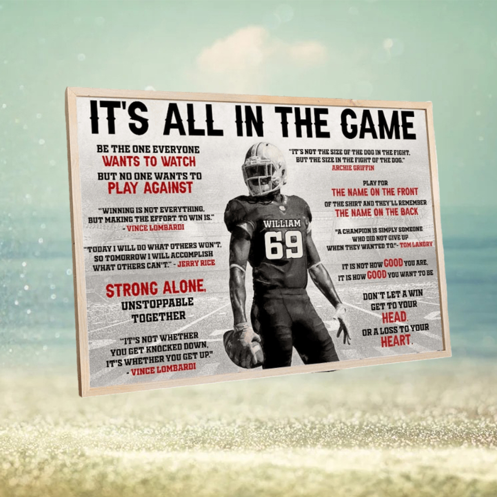 Mental Aspects: Another part of why NFL runner-ups don’t make it back to playoffs clearly seems to be mental, however, and it’s hard to say how the Falcons will cope with getting that close to the championship and having it slip through their fingers, especially in such a Football It’s All In The Game, Personalized Wall Art Print For Football Player Poster fashion. There are players like second-year LB Vic Beasley (who had 0 tackles, and could have intercepted the Pats in OT to stop their game-ending drive, but only got one hand on the football and tipped it away) who will no doubt have some negativity and frustration—both external and internal—to deal with after this game. There’s also a new Offensive Coordinator, as Kyle Shanahan has left to take the head coaching job in San Francisco. It usually takes a couple of years for a new OC to really get the freedom and familiarity with his players to institute major changes, so we can expect the Falcons O to look very similar to this season’s, with perhaps a couple of Football It’s All In The Game, Personalized Wall Art Print For Football Player Poster installed by new OC Steve Sarkisian. No one rocks the boat too hard first year, however, so not too much should change.