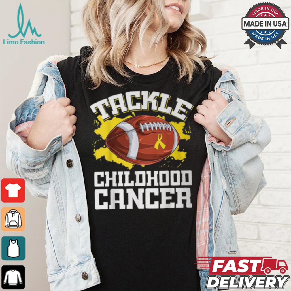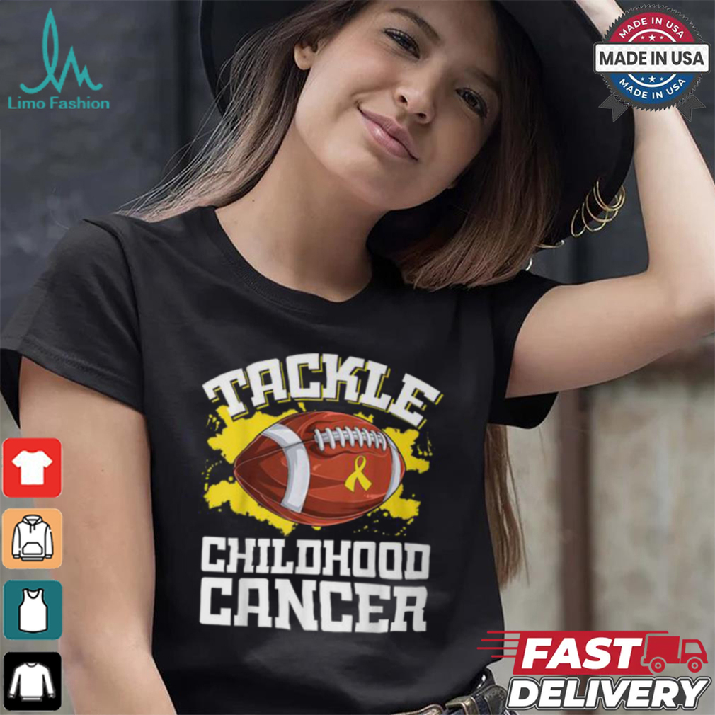 Football Tackle Childhood Cancer Retro Awareness Ribbon T Shirt