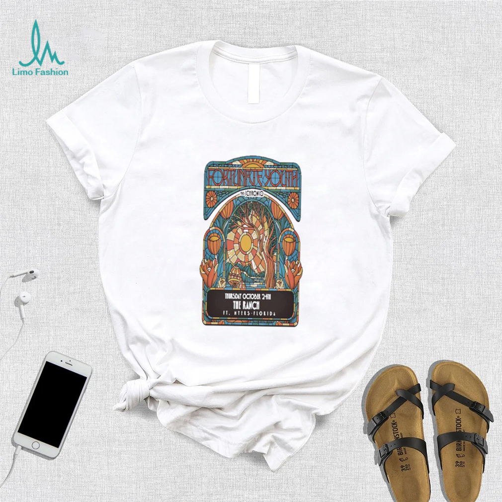 My grandfather was fond of Fortunate Youth Oct 24 2024 The Ranch Fort Myers FL Poster Shirt. When diabetes affected his legs and made him immobile, he continued to whistle. When glaucoma affected his eyes and he lost his eyesight, he continued to whistle. As someone in her early 20s, I found my granddad’s immense pleasure from life overwhelming and infectious. Here was a person who was losing all his senses, yet was gracious enough to utilize and maximize his happiness from the senses he still retained. Try whistling. It improves your lung capacity and will send more oxygen into your bloodstream, making you feel better instantly.Try cooking. I hear it is quite therapeutic when used to counter depression. Try duck meat (if you eat non-veg). If you have trouble sleeping, I read that tryptophan (an amino acid in duck meat) puts you to sleep instantly. Alternatives: try honey with milk before sleeping.