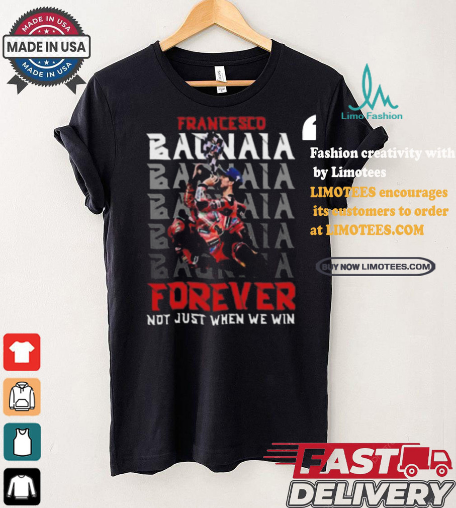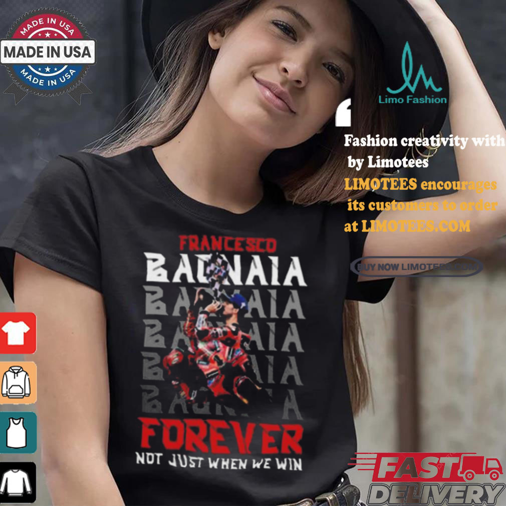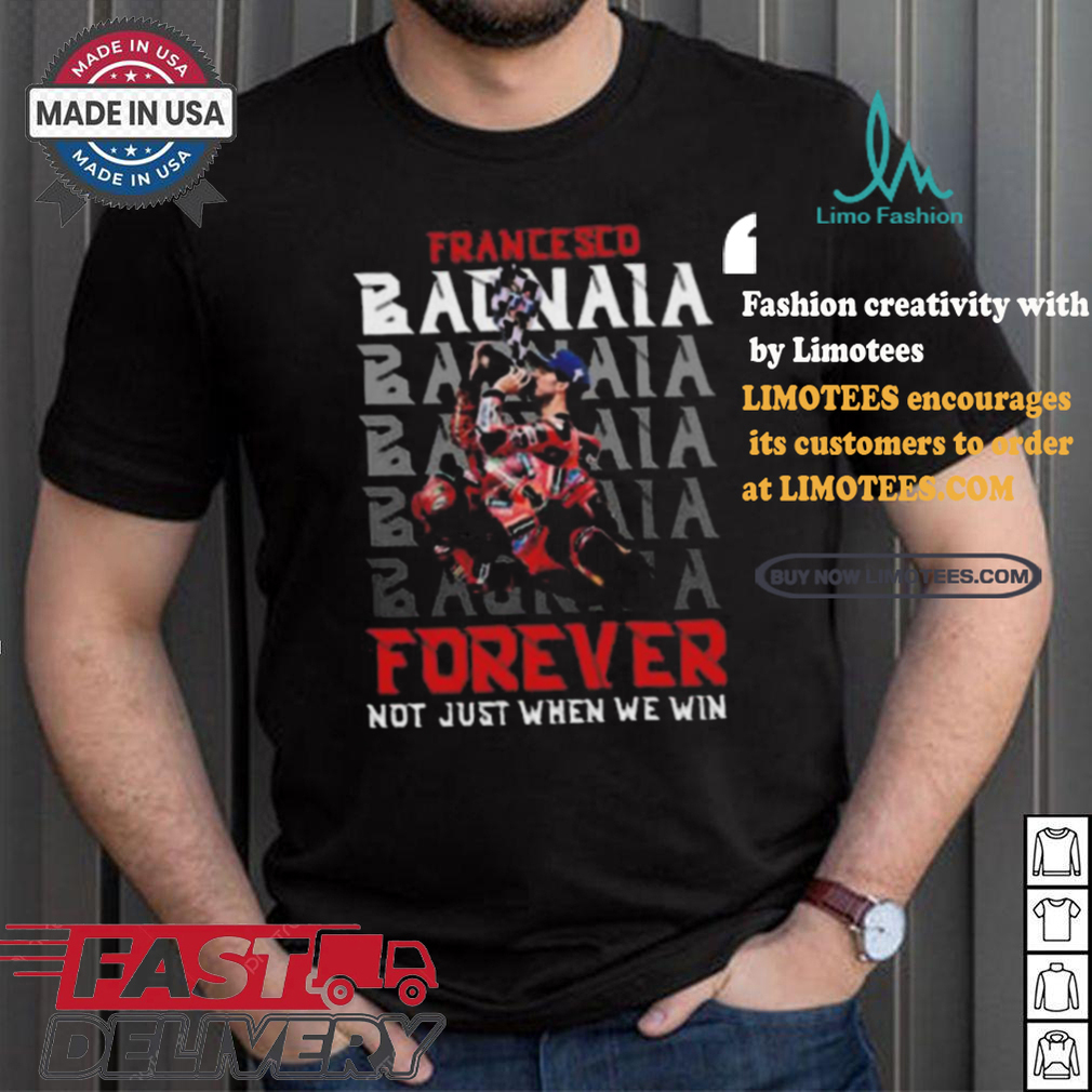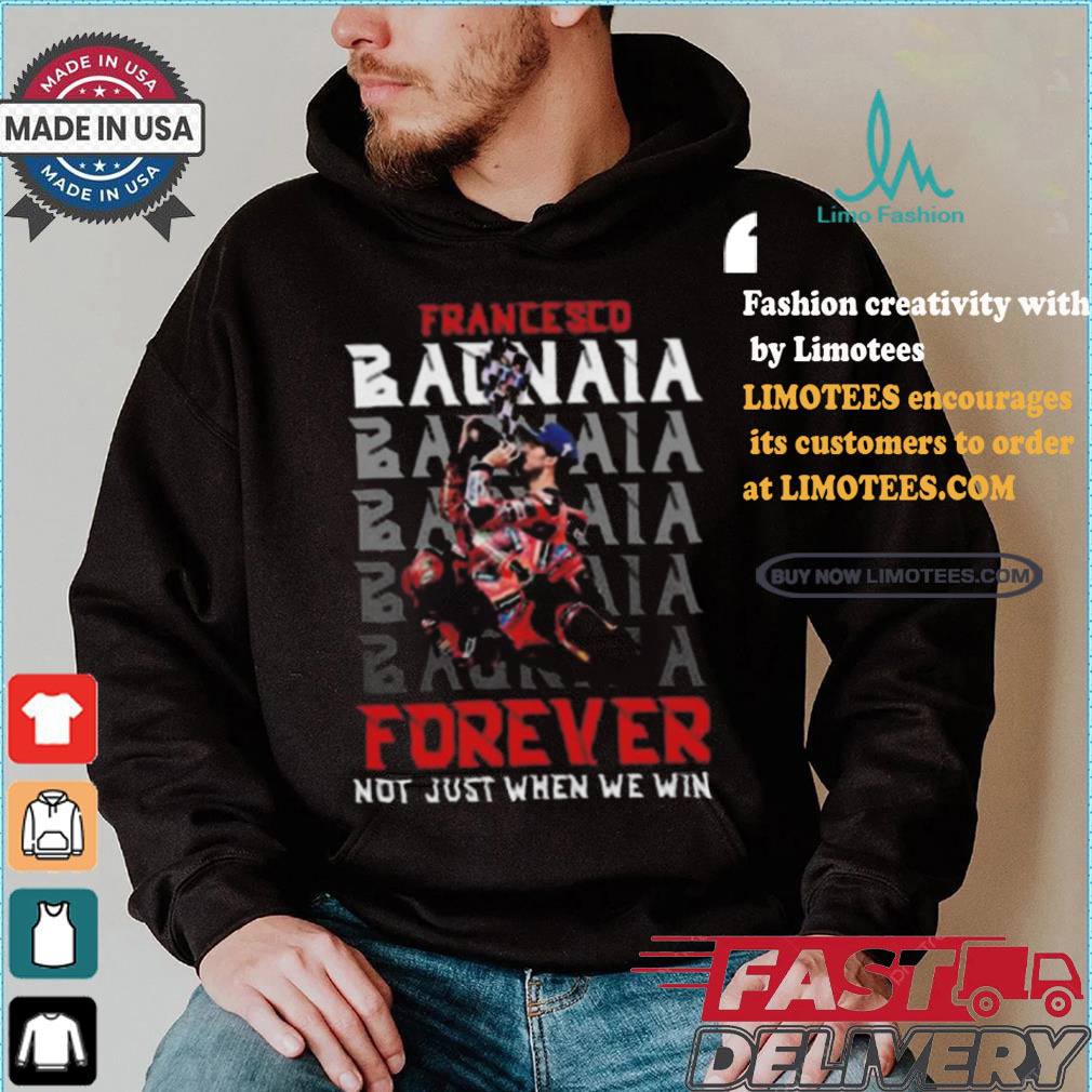 You can wear whatever you want, but remember: This is the office party. This is a Francesco bagnaia forever not just when we win shirt of people with whom you work, so if you wouldn’t wear a revealing dress to work, don’t wear it to the office party. Also, don’t drink much you presumably know your limit, so stop well short of it. Because again—you work with these people. When I worked at TV Guide, senior staff regularly attended the Christmas parties, which (at least at the beginning) were lavish, usually held in off-site venues and allowed employees to bring spouses. You don’t want your boss’s boss asking who that was—the girl in the thigh-high bandage dress and hooker heels or the guy who threw up on the white-glitter sparkle Christmas tree. Women get the brunt of the judgmental post-party gossip about attire while men generally have to do something memorably bad, but I imagine a male manager showing up in gold lame hot pants would cause a stir in most business environments.