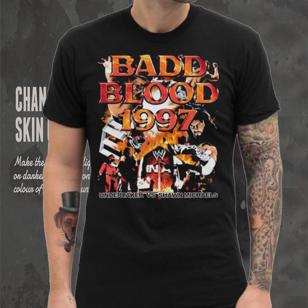 Funny badd Blood 1997 Undertaker vs Shawn Michaels retro vintage style bootleg rap shirt