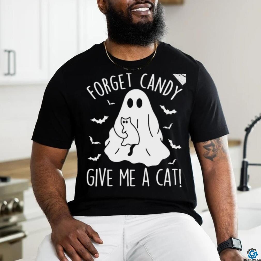 Funny Boo Ghost Black Cat Forget Candy Give Me Cat Halloween T Shirt