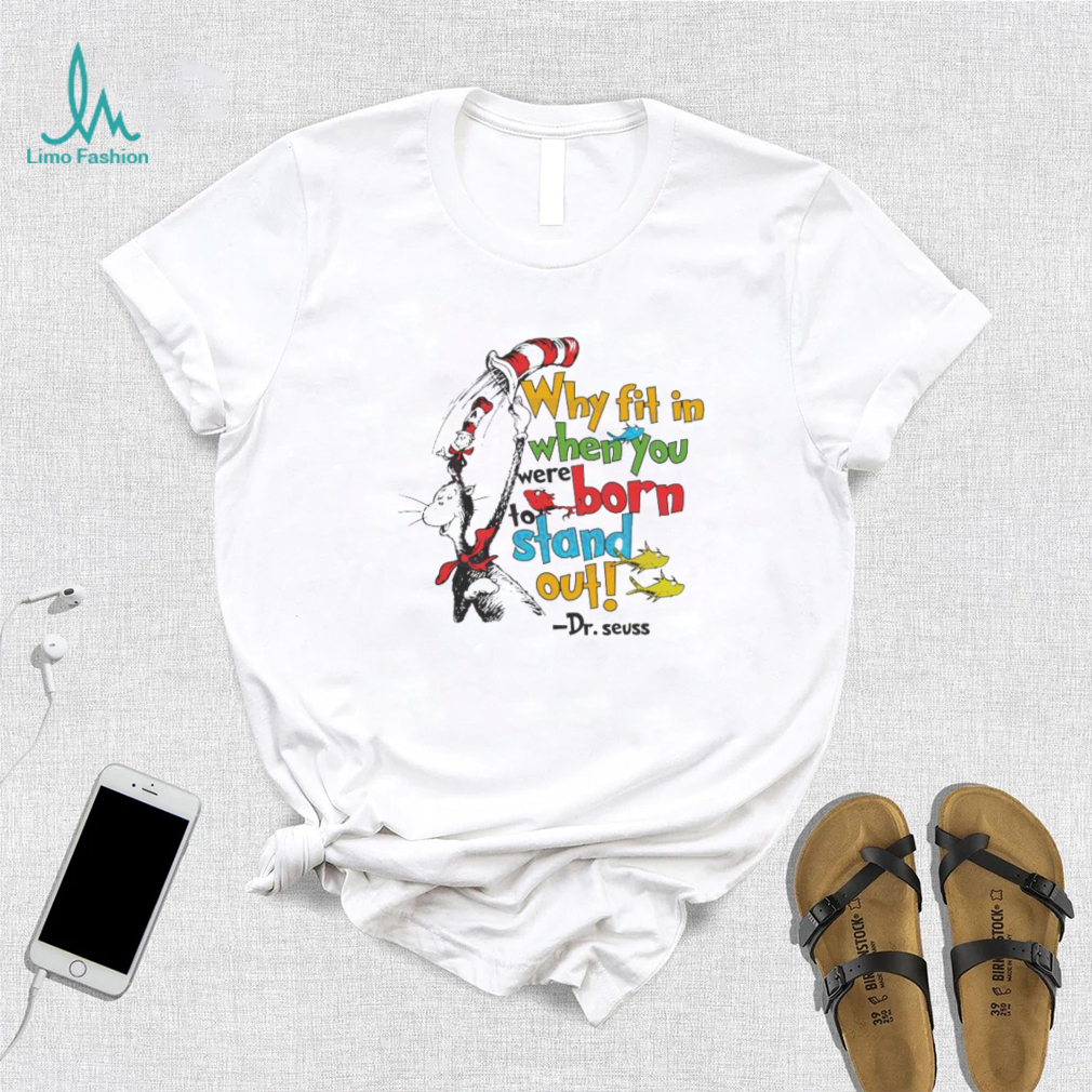 (Funny Cat In The Hat Why Fit In When You Were Born Shirt, guys tee)Funny Cat In The Hat Why Fit In When You Were Born Shirt