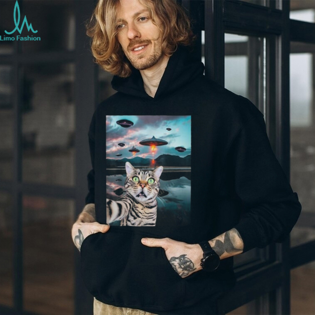 ()Funny Cat Selfie with UFOs, Hoodie, Sweater, Vneck, Unisex and T-shirt