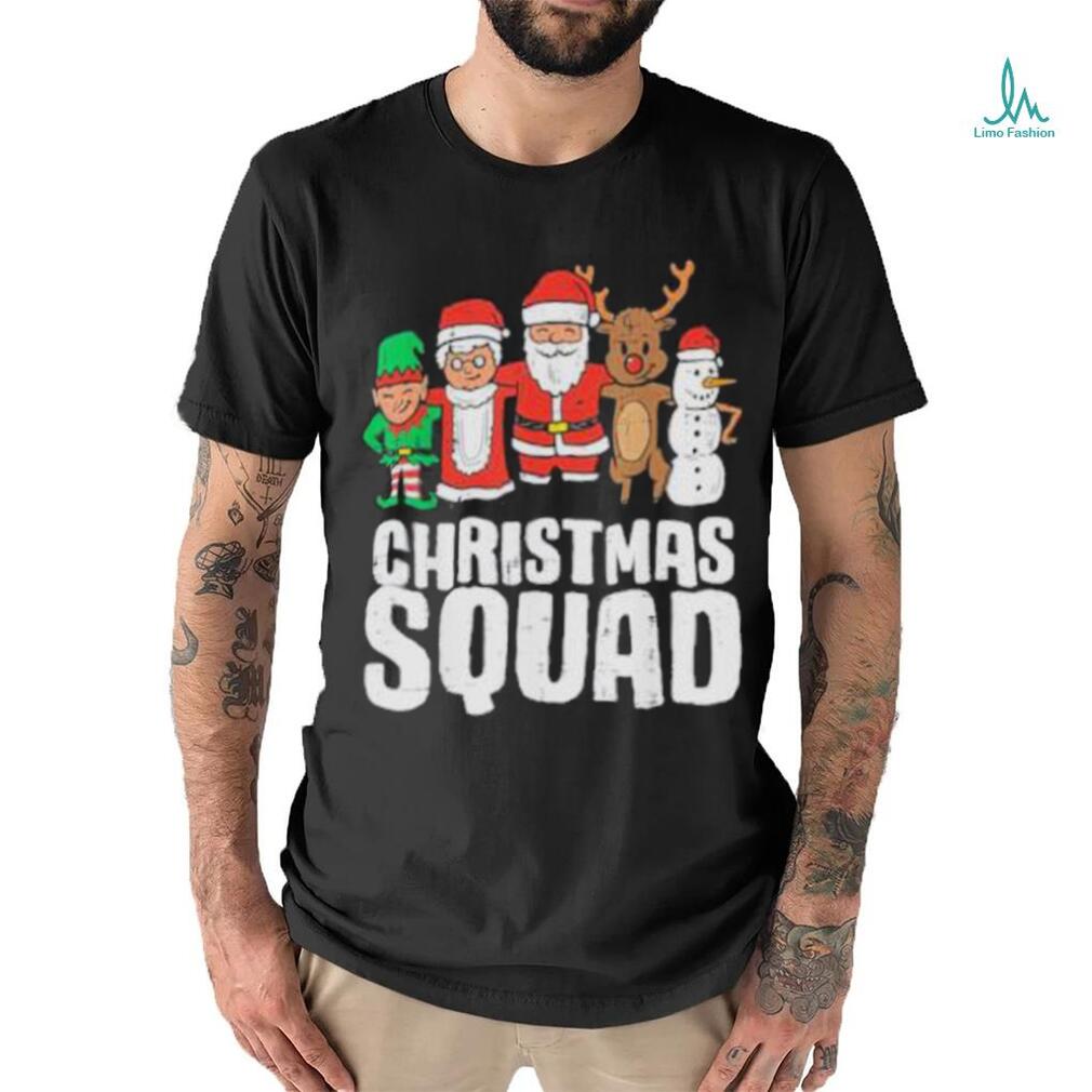 I can go out for dinner and within a Funny Christmas squad santa elf xmas family kids boys shirt hour drive I can find awesome Italian food, good French restaurants, German, Polish, Indian, Thai, Vietnamese, Mexican, Ethiopian, Greek or Malaysian food and may others. Granted in NYC you can probably find all of that in a 3 block radius in NYC, but it is nice to have. I can go to a supermarket and find jicama, lemon grass and other exotic ingredients. If I can’t find it in the supermarket there is probably an ethnic food store within a short drive where I can. I can spend a day at the beach with many thousands of others laying blanket to blanket, or go to Island Beach State Park where the crowd is controlled and the scenery and sand dunes probably don’t look a lot different from what the first European settlers encountered when they reached the shores of NJ.