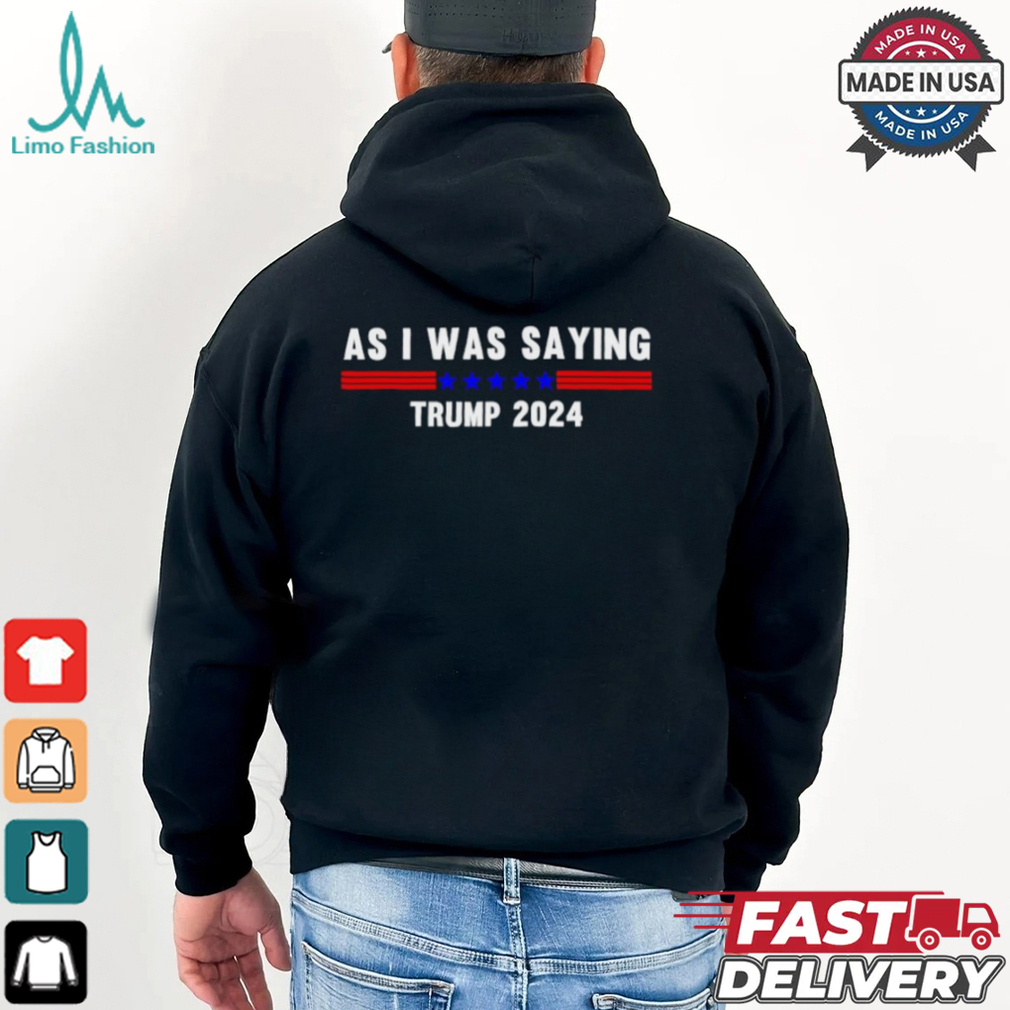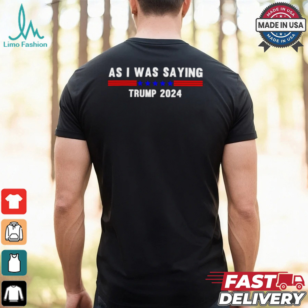 There is surely something is wrong with the Funny So As I Was Saying Trump 2024 Donald Trump shirt of those who raise this kind of questions at all! Being politically and ideologically opposed does not mean an inveterate social and religious vengefulness. What was envisaged there is a certain kind of ideological framework for the country based on its age-old ethicality and prevent India from losing its identity in the flood waters of the anarchical and hegemony-anchored Western Culture. It is not because secular forces fight against ISIS or Al-Qaeda that secularists systematically despise Islam or its followers. Nor is it because India is engaged in a protracted conflict with Pakistan that India despises Pakistanis wholesale. Do understand that India has a very unique cultural ethos. All so, that the Western social ethos does only encouraging baser instincts of people and subtly acquires power over them in the name of controlling the consciously unleashed waywardness in the name of law.