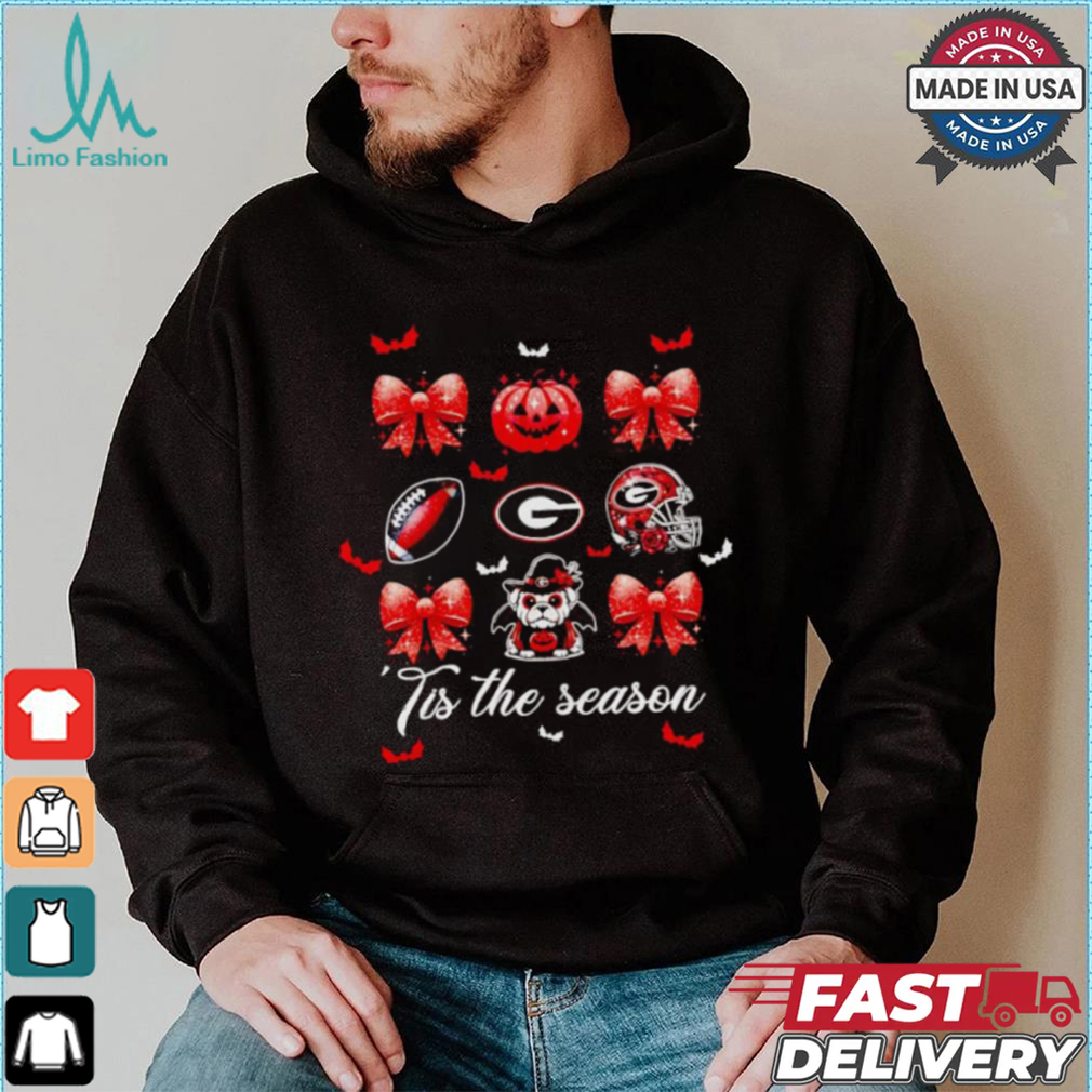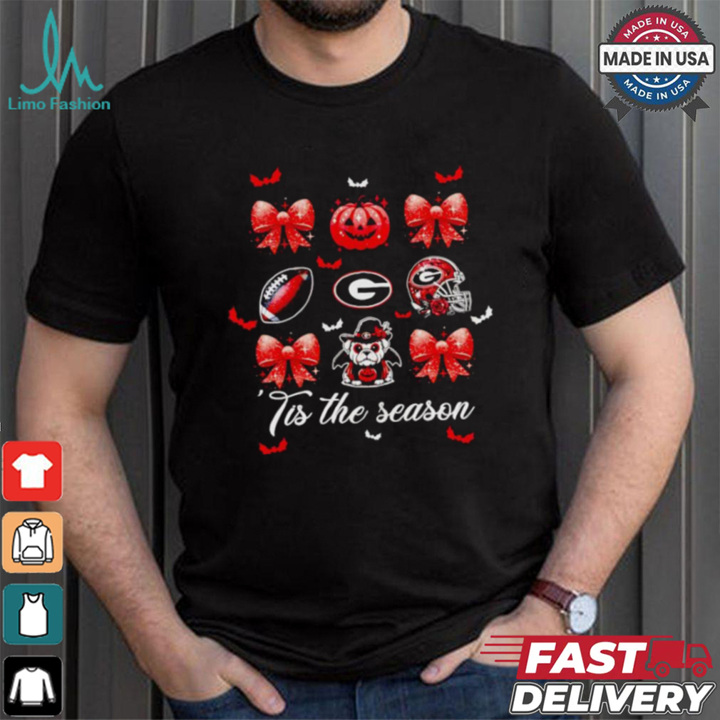 If you go straight from Georgia Bulldogs ’tis the season Halloween shirt just wear your work clothes so you don’t seem fussy. Otherwise, it depends on what you normally wear to work, and the venue. If you wear a suit and tie to work, but the party is at a casual bar or restaurant (a place where on a normal night people would wear jeans) then dress down and wear jeans and a sweater with clean sneakers or leather dress shoes. if you have a casual work place where you wear jeans or a work uniform and the party is at a nicer venue specifically for parties (like a banquet hall) or a nicer bar/restaurant then dress up and wear slacks, a sweater and dress shoes. If you are really really unsure, ask your colleagues what they are wearing. If everyone is unsure wear clean dark black jeans (these could look like dress pants in the dark) a sweater and dress shoes. This outfit would fit in anywhere. In NYC just wear all black and you’ll look chic and appropriate.