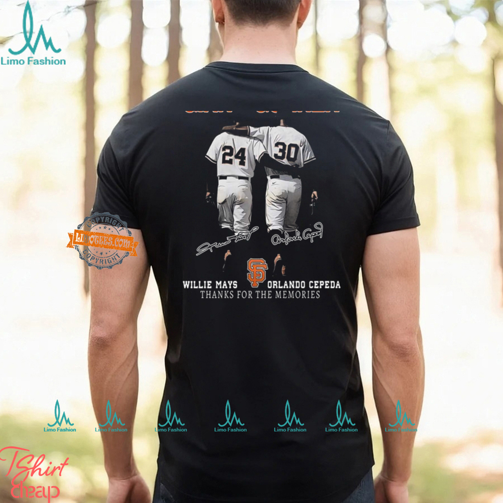 Giant Gunner Willie Mays And Orlando Cepeda Thanks For The Memories T Shirt