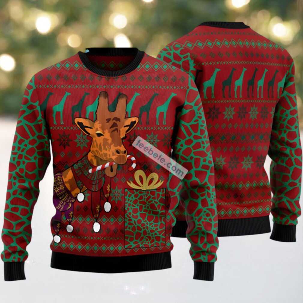 Looking to reach new heights of “ugly” this Christmas? This Giraffe Holding Candy Ugly Christmas Sweater is your ticket to winning the ugliest sweater contest! Imagine the gasps and giggles as you stroll in, flaunting this masterpiece of holiday horror. Perfect for those who love to push the boundaries of festive fashion and want to make a truly unforgettable statement. Get ready to stand tall and ugly this Christmas!