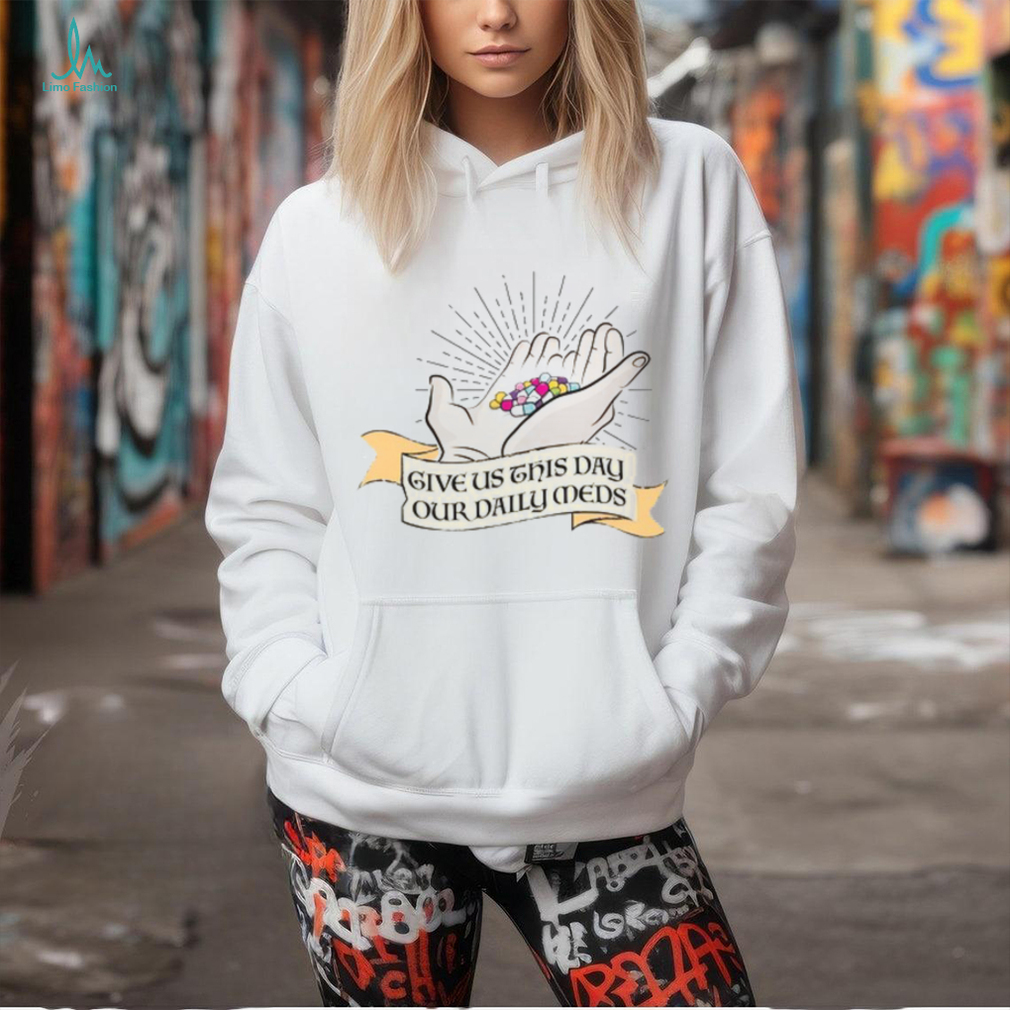 For us it depends, if we’re hosting thanksgiving at our house then we will typically start put up the Give Us This Day Our Daily Meds Shirt on thanksgiving weekend, sometimes even right before after thanksgiving dinner. Since we have guests over we use that as an excuse to take advantage of the additional helping hands. Instead of asking for help in the kitchen we’ll get through decorations. Plus I think it also makes for a decent pre-dinner workout activity. If we’re not hosting thanksgiving then we’ll put up the decorations little by little with the aim to finish by December 1st. I don’t know why but I like the idea of being able to enjoy the lights all throughout December. As for when we’ll take them down, there’s no set date but we definitely keep them up past New Years and at least a few weeks into January. I think the longest we had them up was until Valentine’s Day, we had spent the entire most of January in Florida that one year.