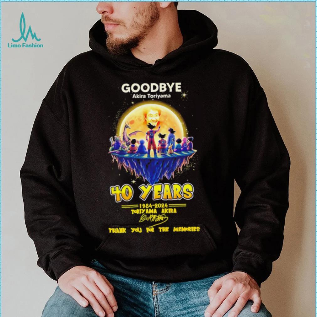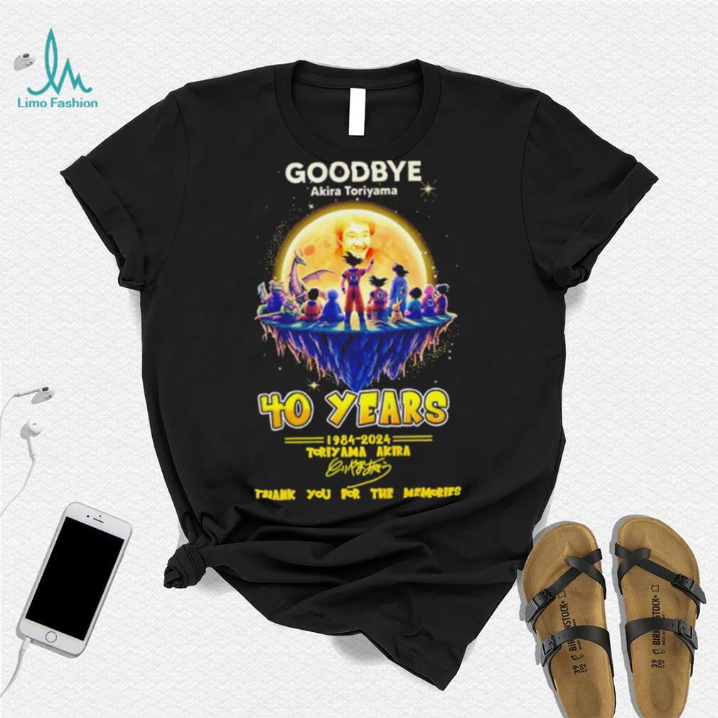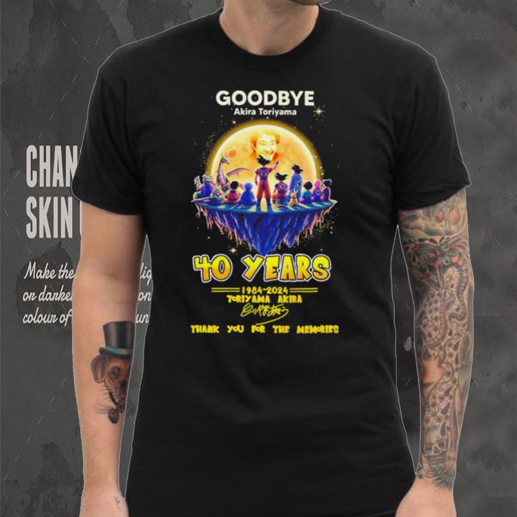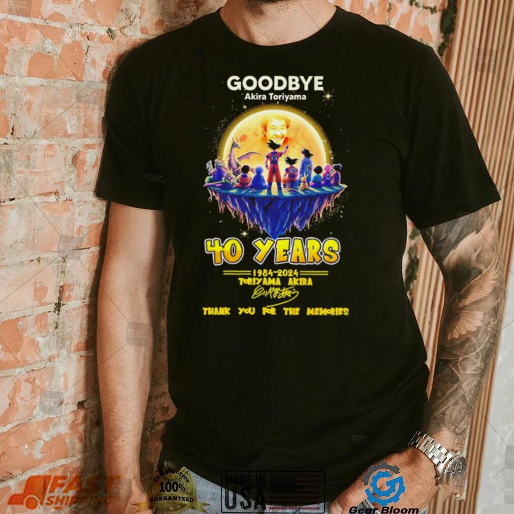 This brings me to my seventh point. Find out what Goodbye Akira Toriyama 40 years 1984 2024 thank you for the memories characters shirt want is in fact very difficult. However, to quote Steve Jobs, “when you find what you love, you will know it. Keep looking, don’t settle.” I am not too sure if the Steve Jobs model is universally applicable, as I do think that his happiness is based on a considerable degree of luck (what he liked doing, i.e. inventing I.T. products, was simultaneously the hottest thing going in the world when he was doing it.