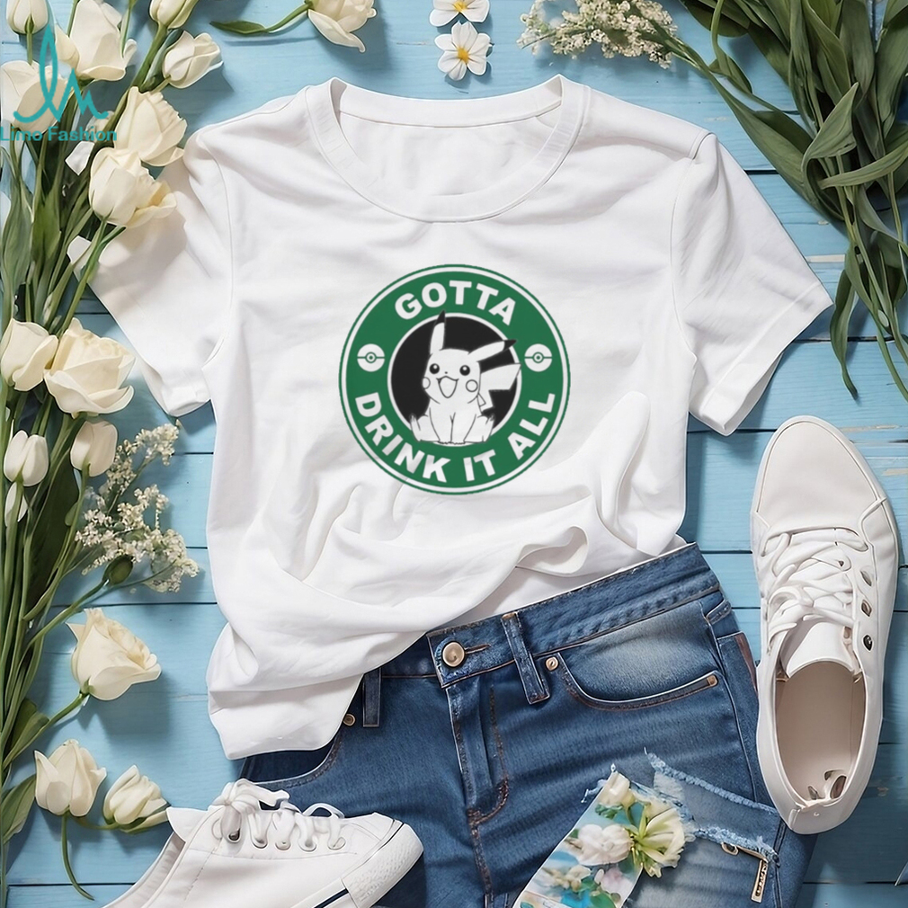 Gotta Drink It All Pokemon Starbuck Parody Pikachu shirt, Hoodie, Sweater, Vneck, Unisex and T-shirt