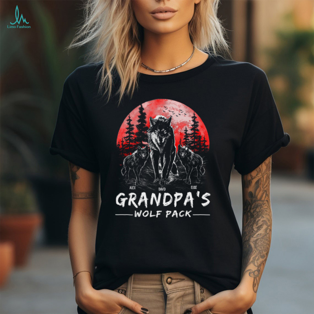 Grandpa Wolf Pack Personalized Shirt Perfect Father’s Day Gift for Grandfather & Dad Unique Men’s Personalized Tee shirt