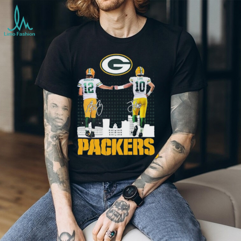 Green Bay Packers Aaron Rodgers And Jordan Love Signatures Shirt, Hoodie, Sweater, Vneck, Unisex and T-shirt