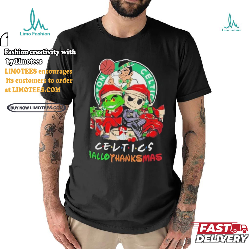 Grinch And Jack Boston Celtics Friends HalloThanksMas Shirt, Hoodie, Sweater, Vneck, Unisex and T-shirt