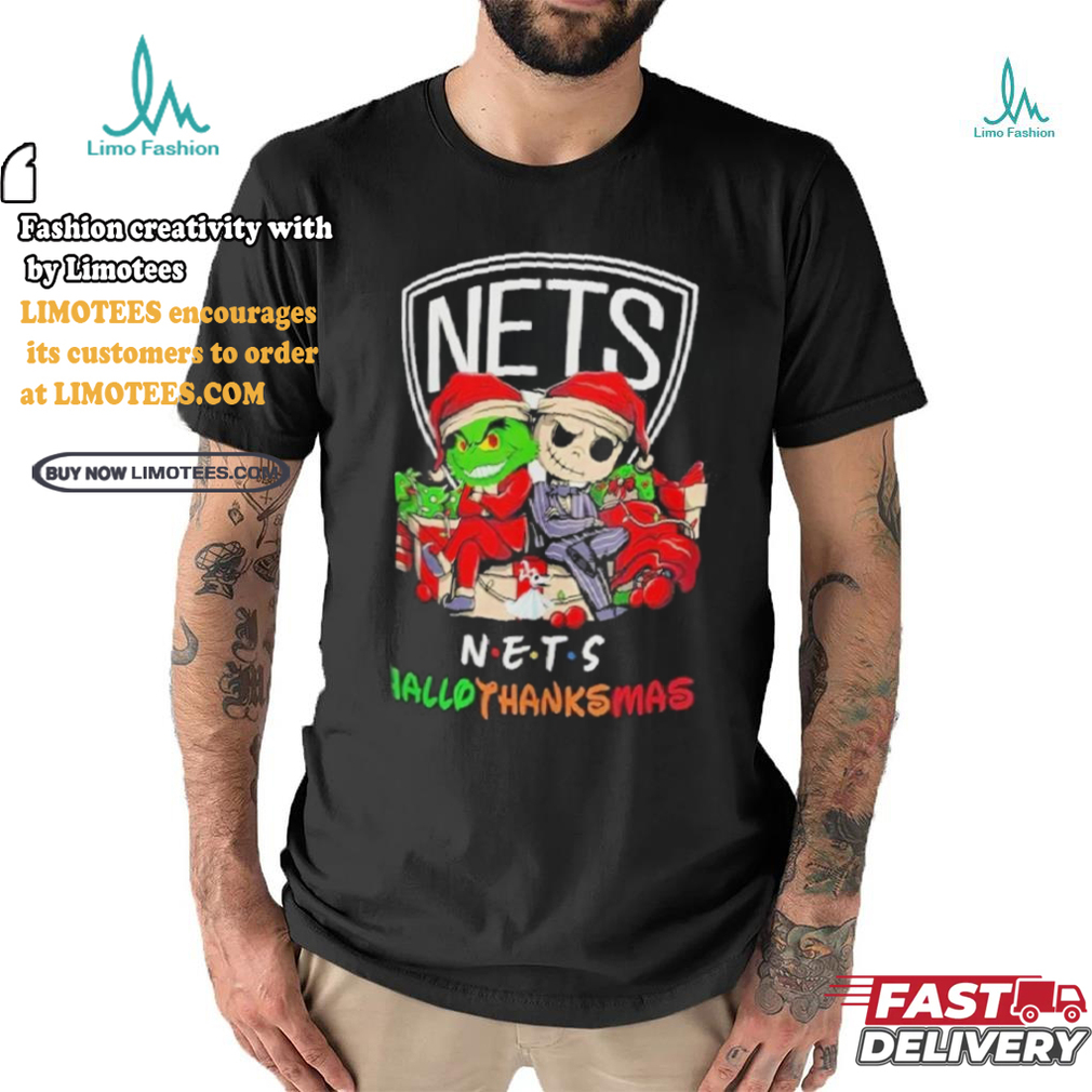Grinch And Jack Brooklyn Nets Friends HalloThanksMas Shirt
