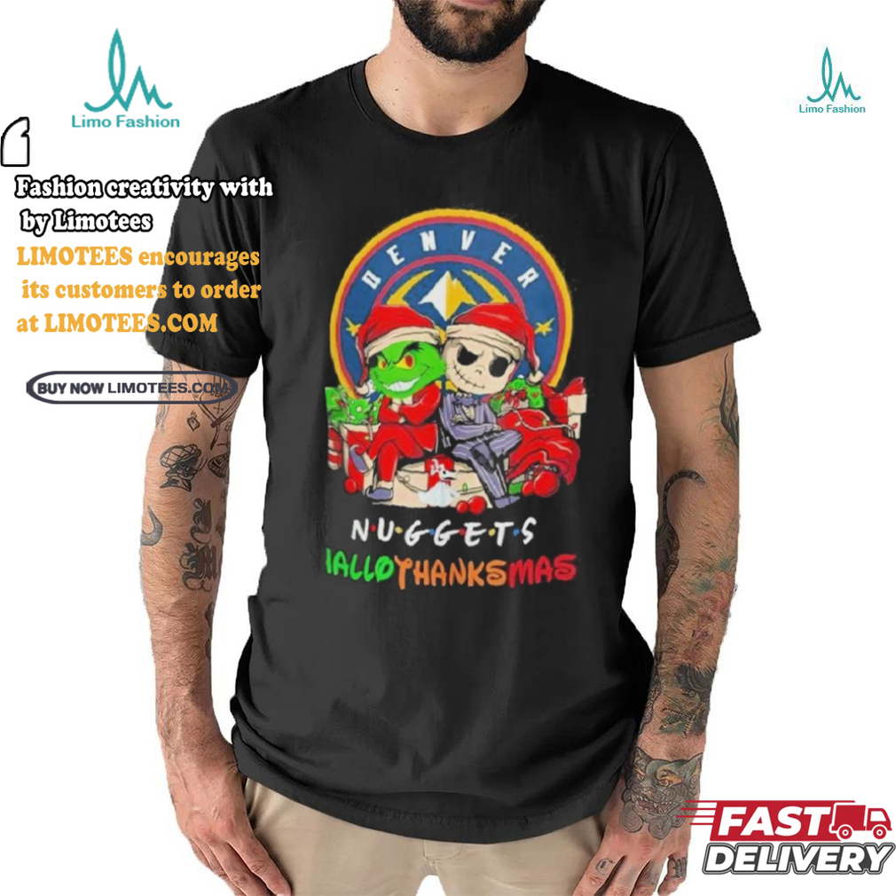 My mother confirmed later, that when she worked for the state’s Grinch And Jack Denver Nuggets Friends HalloThanksMas Shirt office, these properties were held for generations by families whose ownership couldn’t be easily determined due to inbreeding. I also met a man a couple of years later who worked for the department of public works. He told me he had to go out to these properties occasionally and had observed some outrageous behaviors among the Pine Barrens families that seemed to reinforce what my mother had said – that it scared him to the point that he told his boss that he wouldn’t go out there any more, even if it meant losing his job. He told me this before I even mentioned the camping trip incident. True or not, it creeped me out for certain! Either that, or worse, we could have run into the ‘Jersey Devil’! Never made another trip to that part of the state again…