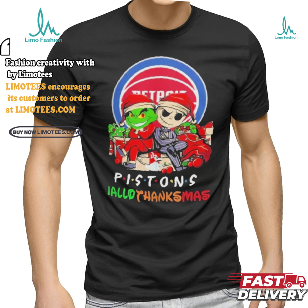 Grinch And Jack Detroit Pistons Friends HalloThanksMas Shirt, Hoodie, Sweater, Vneck, Unisex and T-shirt