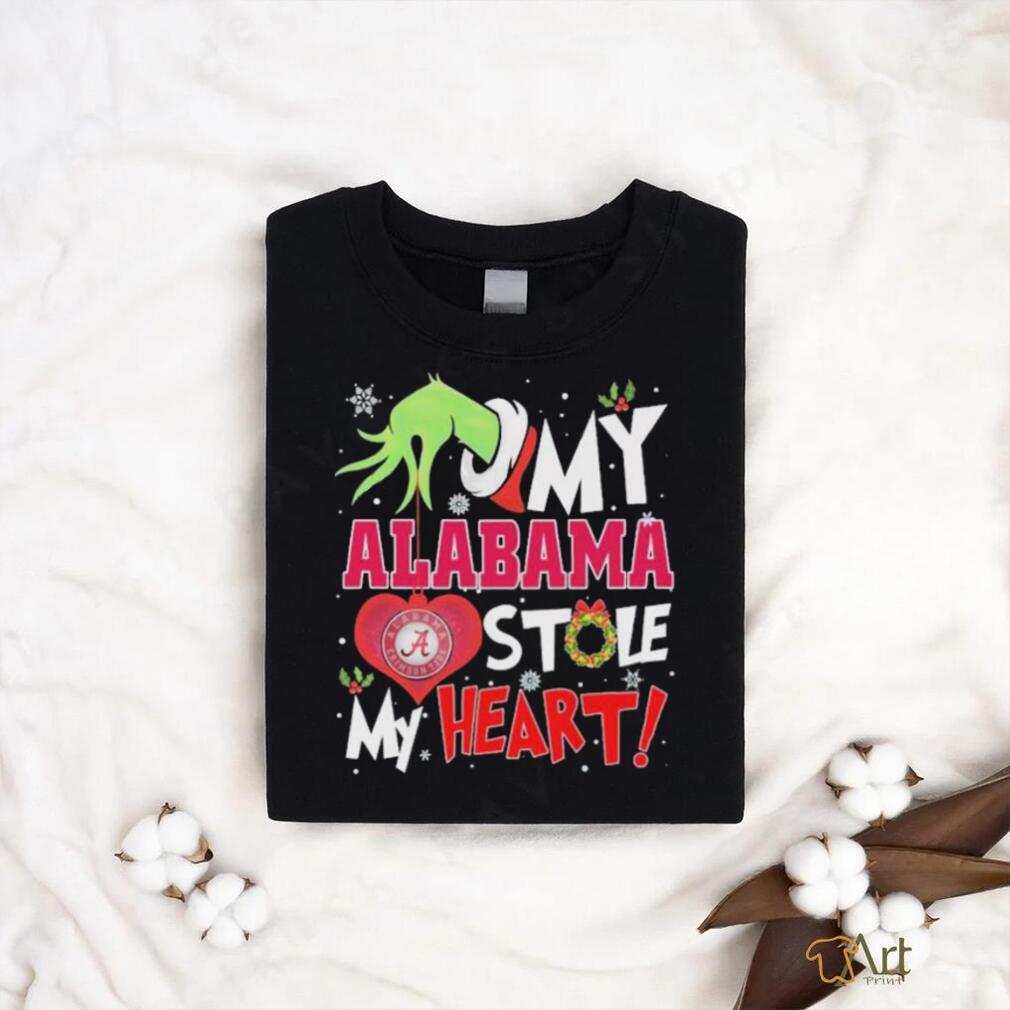 Grinch Hand Hold Alabama Crimson Tide Stole My Heart Christmas Shirt, Hoodie, Sweater, Vneck, Unisex and T-shirt