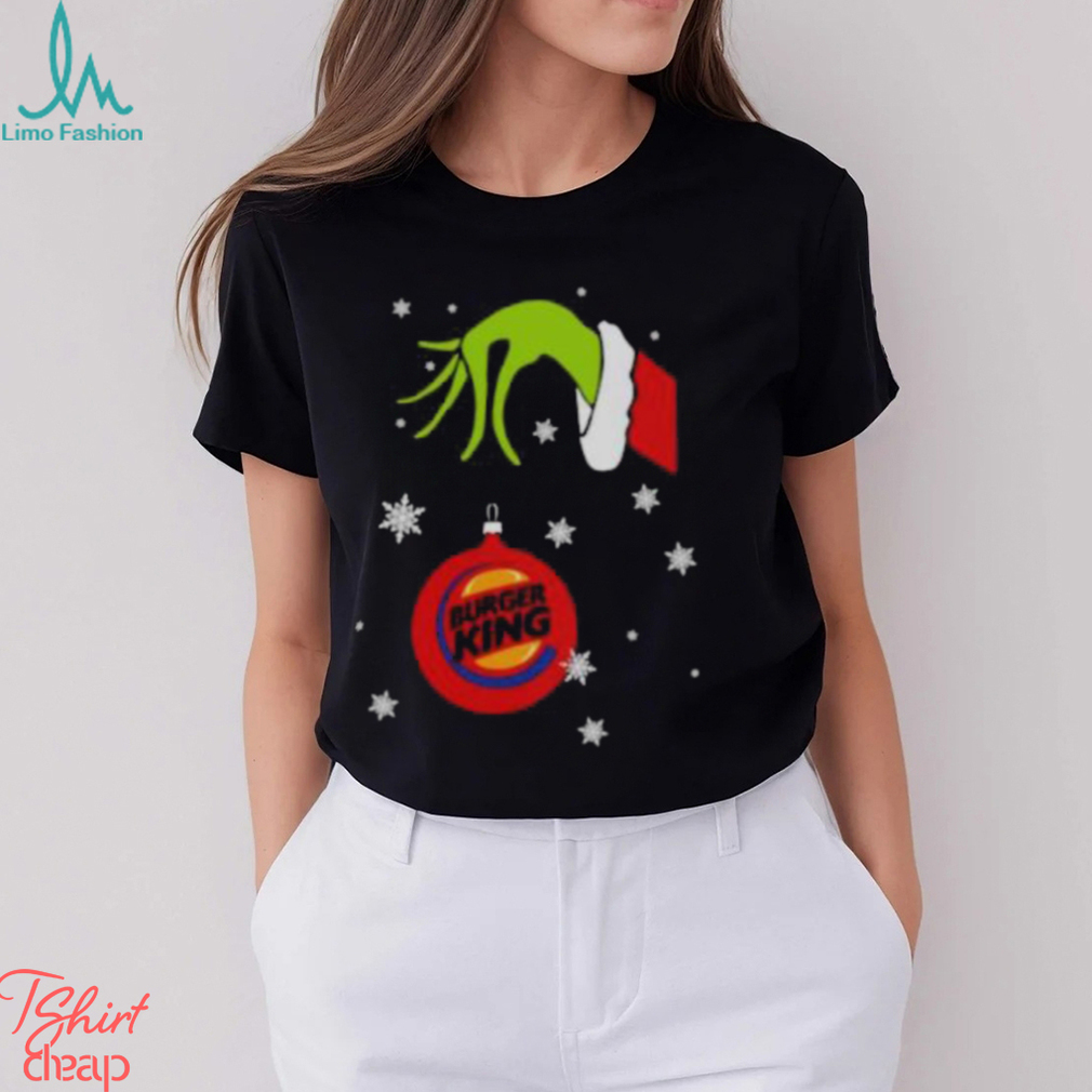()Grinch Hand holding Ornament Burger King Snowflake Christmas shirt hoodie, tank top, sweater and long sleeve t-shirt