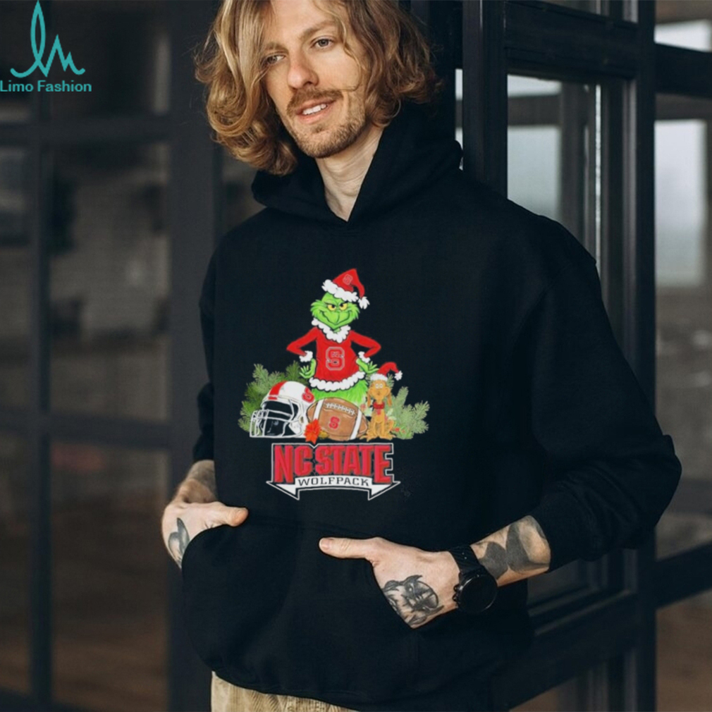 So, I’ve been working at this company for nearly a Grinch Hat Santa and Dog Rugby Helmet NC State Wolfpack Logo Merry Christmas Shirt from January. I needed a job as was being made redundant and this popped up so I took it, it’s a night shift but work is work. Now, after about three months, I was asked by my colleague if I could cover his shift as he had an evening event to go to which I said that’s fine I came to find out it was a company event where everyone is invited to it but me. I shrugged it off as I thought I’m new so I guess they had it booked for a while. Kinda still sucked having to cover someone’s shift though as they were having fun and I’m stuck in the office. Anyways, fast forward to about a month ago I was doing paperwork and I came across an email stating Christmas party, I brought it up with my colleague he said is there? To which I said yeah at this place he said oh yeah I know I’m going to that. I was struck as I had not been approached or invited to it, what makes it worse is as there has been a boom in work lately they have took on about 6 new people about 3 months ago and they have all been added to the guess list and they class each other now as “family” while I’m stuck covering the guys shift and I was told I need to have the on call phone over Christmas because he has a family?! Well so do I!!!