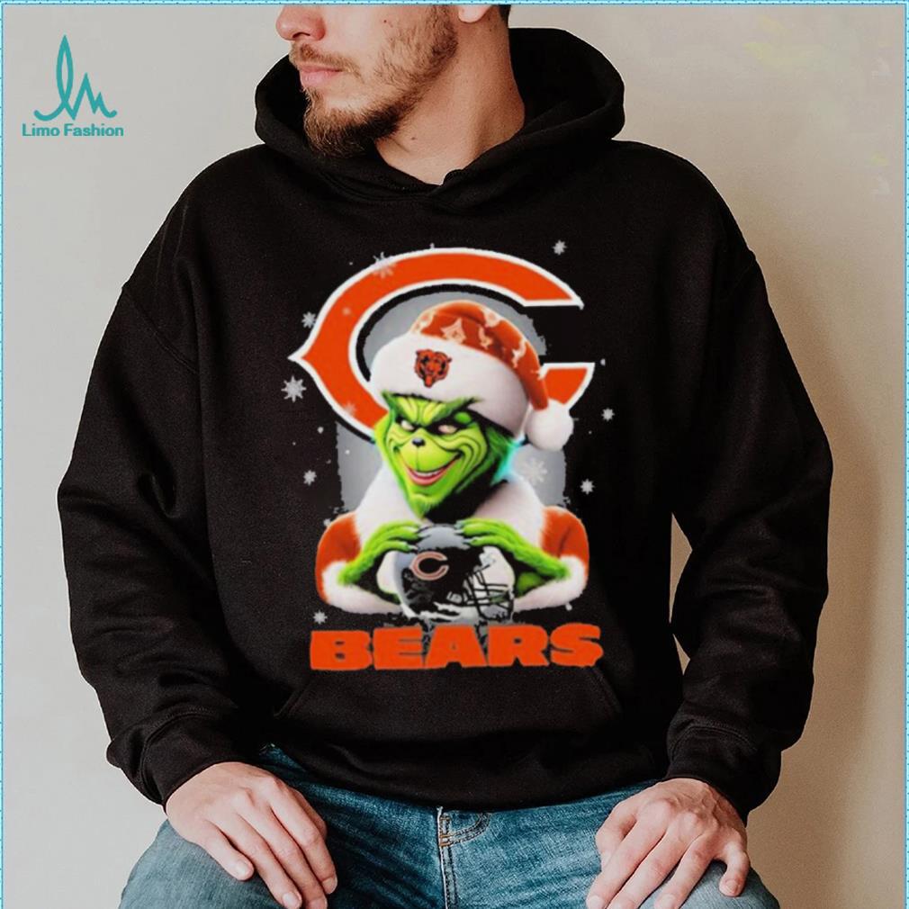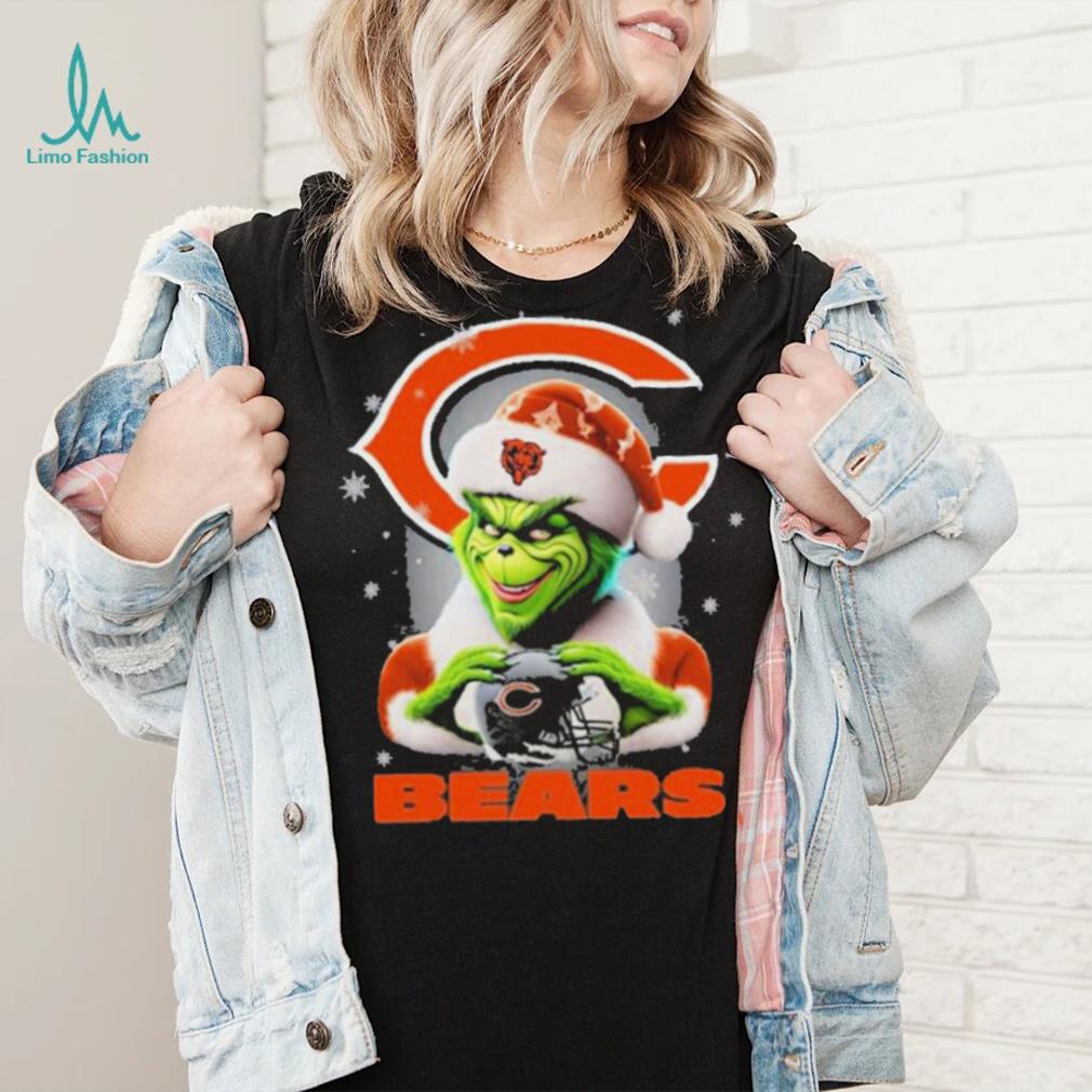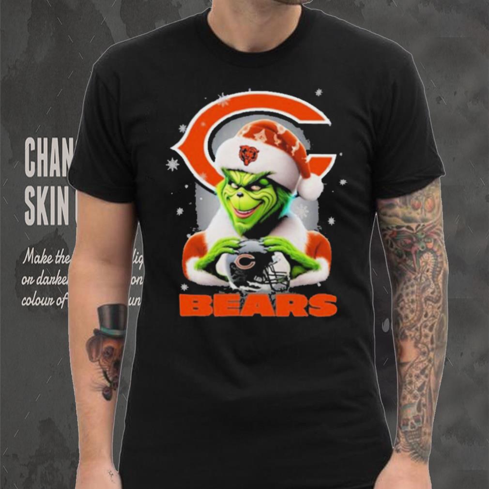 It takes place on Christmas and most of the Grinch Hat Santa Chicago Bears Helmet Logo Merry Christmas Shirt revolves around the festivities involving it. Such as Max being Gotham’s Santa Claus, The Tree Lighting Ceremony and the costume ball prior to Christmas day. Hell the last lines between Alfred and Bruce were wishing each other Merry Christmas.