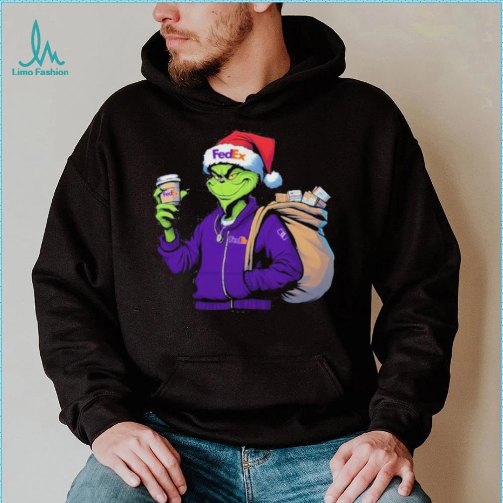 Grinch Hat Santa Hug Coffee FedEx Logo Christmas Shirt