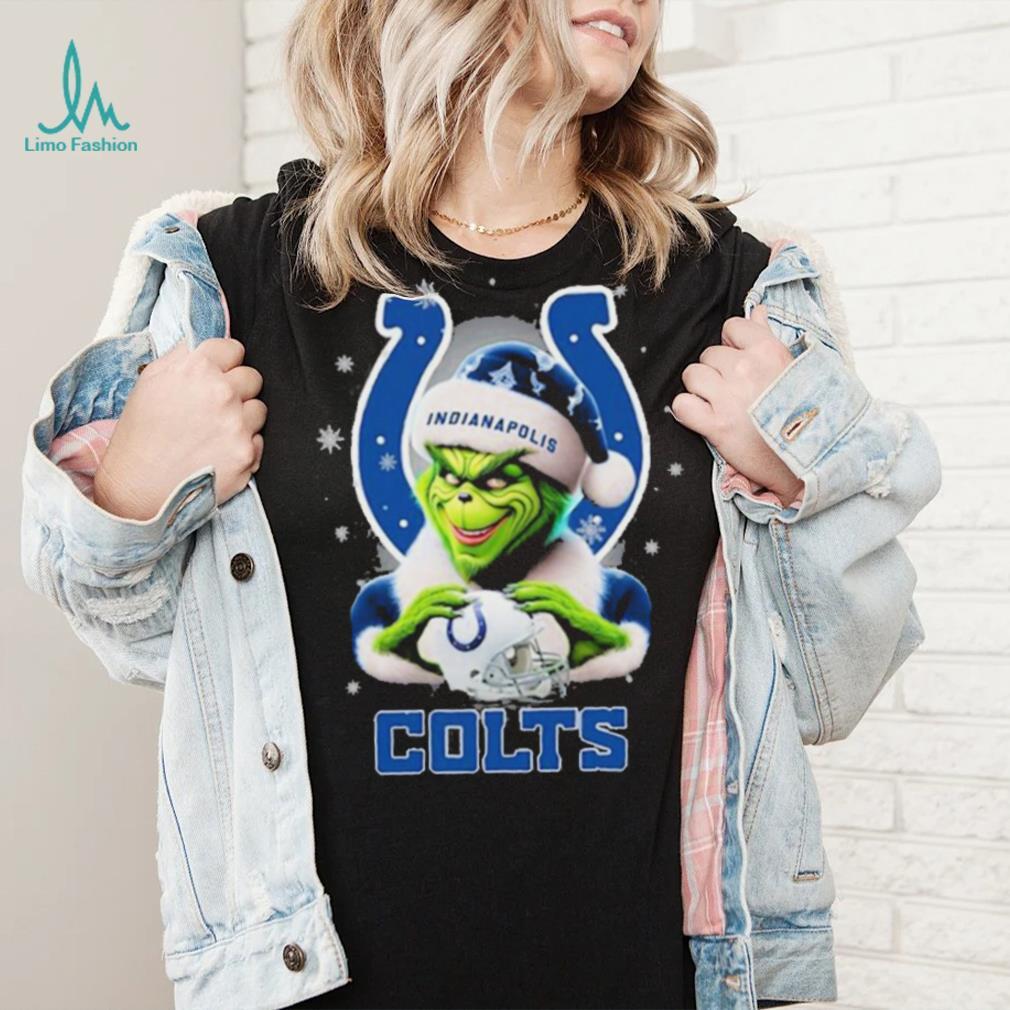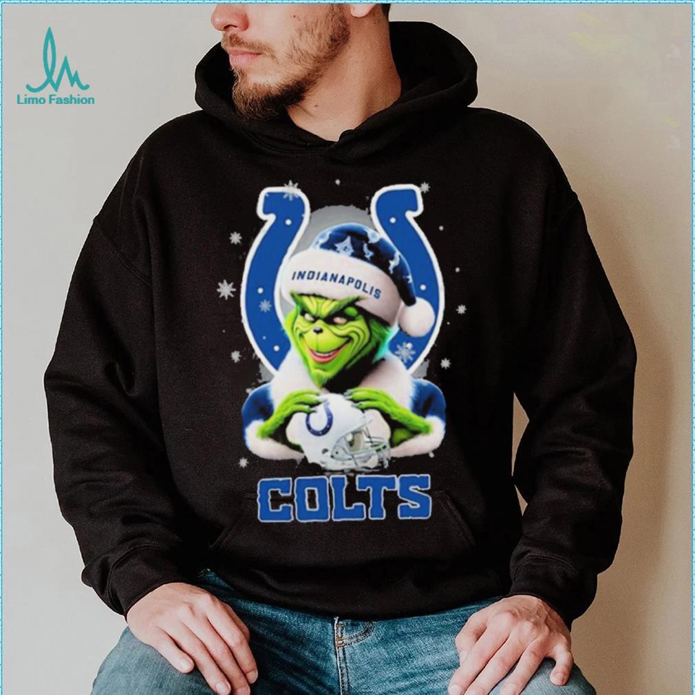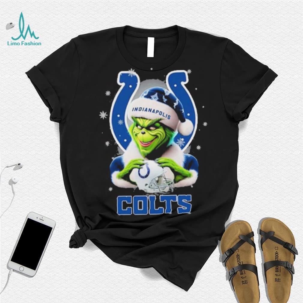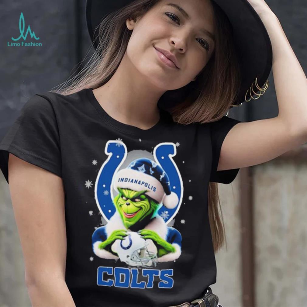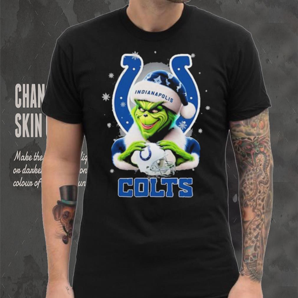 It takes place on Christmas and most of the Grinch Hat Santa Indianapolis Colts Helmet Logo Merry Christmas Shirt revolves around the festivities involving it. Such as Max being Gotham’s Santa Claus, The Tree Lighting Ceremony and the costume ball prior to Christmas day. Hell the last lines between Alfred and Bruce were wishing each other Merry Christmas.