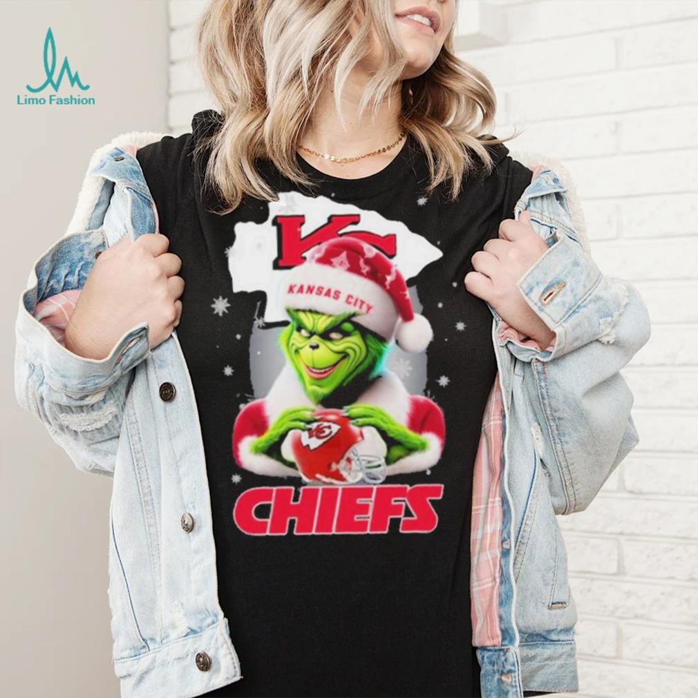 The Grinch Hat Santa Kansas City Chiefs Helmet Logo Merry Christmas Shirt to when Beethoven first realizes his deafness and he explains that Theresa would not love him were she to know. He is then shown Theresa’s reaction to his unexplained absence and he realizes that his deafness is the cause of all his problems. Fate explains that if she cures his deafness his music will suffer, as the Muses would not be heard as easily through the everyday sound. He thus withdraws his request. Beethoven is then shown that Theresa would have loved him forever and he becomes very sorrowful. But Fate then offers visions of the countless musicians of the future who would be influenced by Beethoven’s works. As one last, ultimate vision he is allowed to improvise with the musicians of the past and future who were inspired by him. Realizing that removing the hardships from his life would destroy his music, Beethoven informs Fate that he will not change any part of his life.