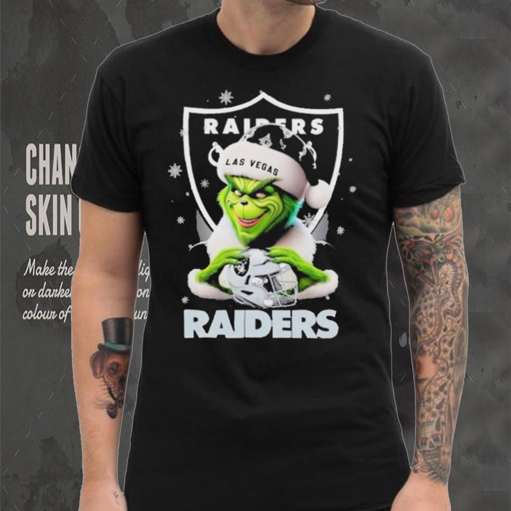 Its increasingly harder to get the NFL to commit to what a CATCH actually is (a TD in Chicago can be called a non catch in Seattle, even though the same exact type of Grinch Hat Santa Las Vegas Raiders Helmet Logo Merry Christmas Shirt catch was made). The main reason for this, the NFL does not hire FULL TIME officials. These are men (and now women) with other jobs that while they are fully trained, do not do this full time as their main work. Further more, NFL officials work together as teams during the regular season. The Playoffs for Referees is just like for the rest of the NFL..the best of the best get to join in. That means you have Line Judges from one team mixed with Referees from another team, because those two people graded the highest during the season, and their reward is.. to ref the playoffs…and Super Bowl. A lot can be said about team chemistry, and how well a Grinch Hat Santa Las Vegas Raiders Helmet Logo Merry Christmas Shirt team works together. Well keep that in the Officiating too please NFL. Pick the best TEAMS and keep them together in the NFL.