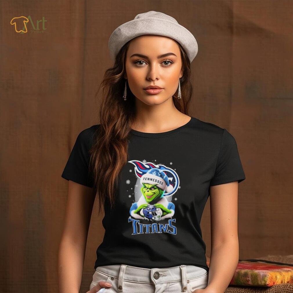 The truckers were speculator and had invested in the Christmas tree to sell to Christmas tree lots so they would have fresh trees. In the past years this had worked out very well, but because of all the Grinch Hat Santa Tennessee Titans Helmet Logo Merry Christmas Shirt , no one wanted the tree. They were going to have to pay to bring them to the dump, so they decide to give them away. I asked the cop and the owner if I could find a place for them to move to, would let them go, it is Christmas. They agreed. I phoned the radio station (a long time before cell phones, this was done on a pay phone) I told them what the problem, the trees were free, but they needed some place to put the trees.