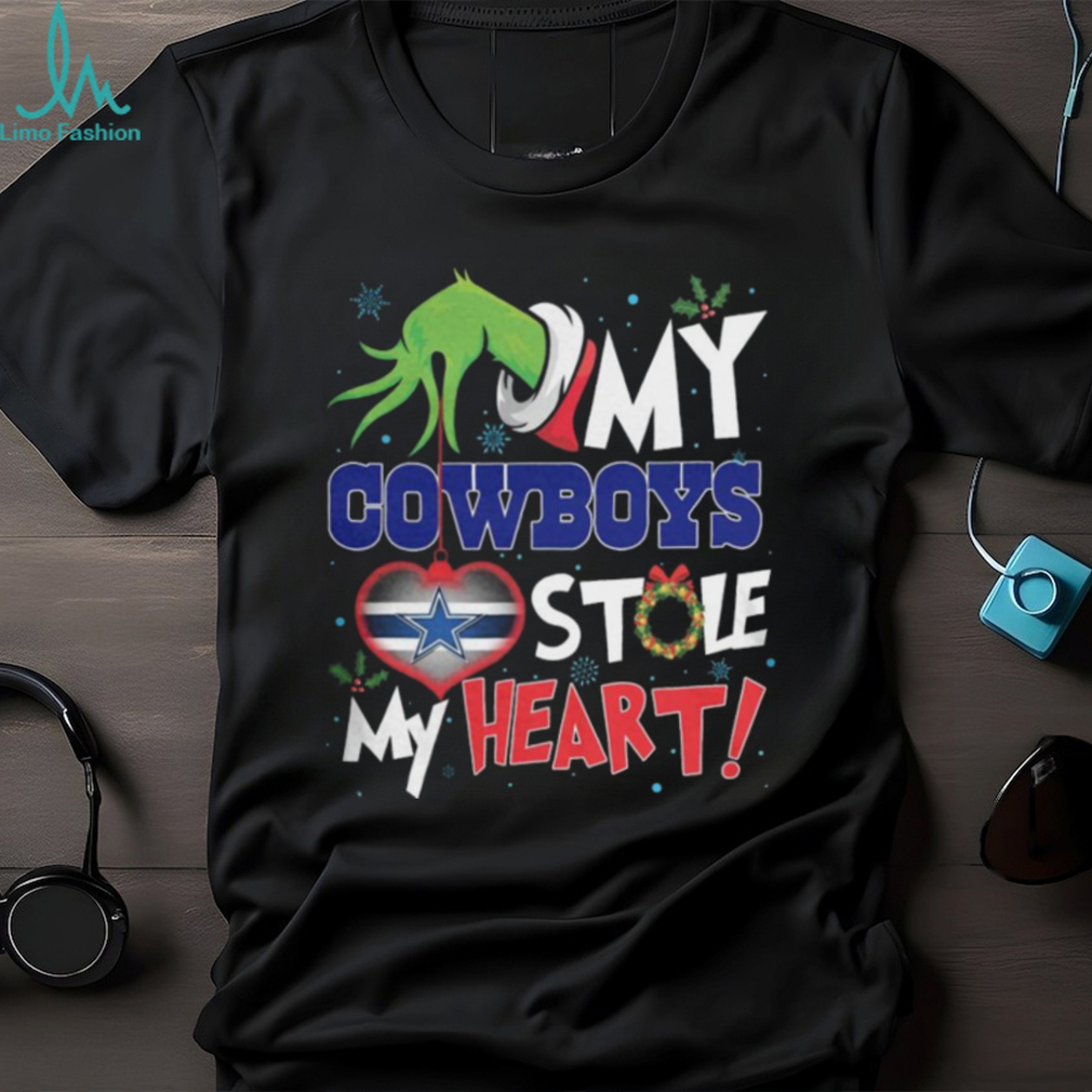 Rugby League may be the easier game to play in terms of learning how, but it has a Grinch My Dallas Cowboys Stole My Heart Football T Shirt cardiovascular fitness requirement compared to the NFL — and higher than that of Rugby Union. An NFL game of 60 minutes takes about 3 hours to play, with multiple personel changes. Many NFL players are simply not fit enough to play either Rugby code, where the minimum fitness required is to play 40 minutes straight and a further 20 minutes after a 15 minute half time break. League is especially demanding on fitness because the ball is in play for a higher percentage of that time. From what I’ve seen, a lot of NFL players would require a year of physical conditioning to play rugby to any decent level.