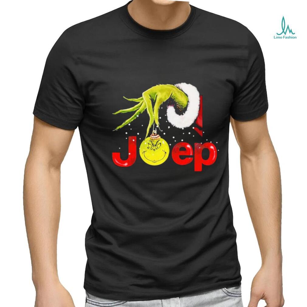 Best Grinch Santa Hug Ball Grinch Glossy Jeep Merry Christmas Shirt