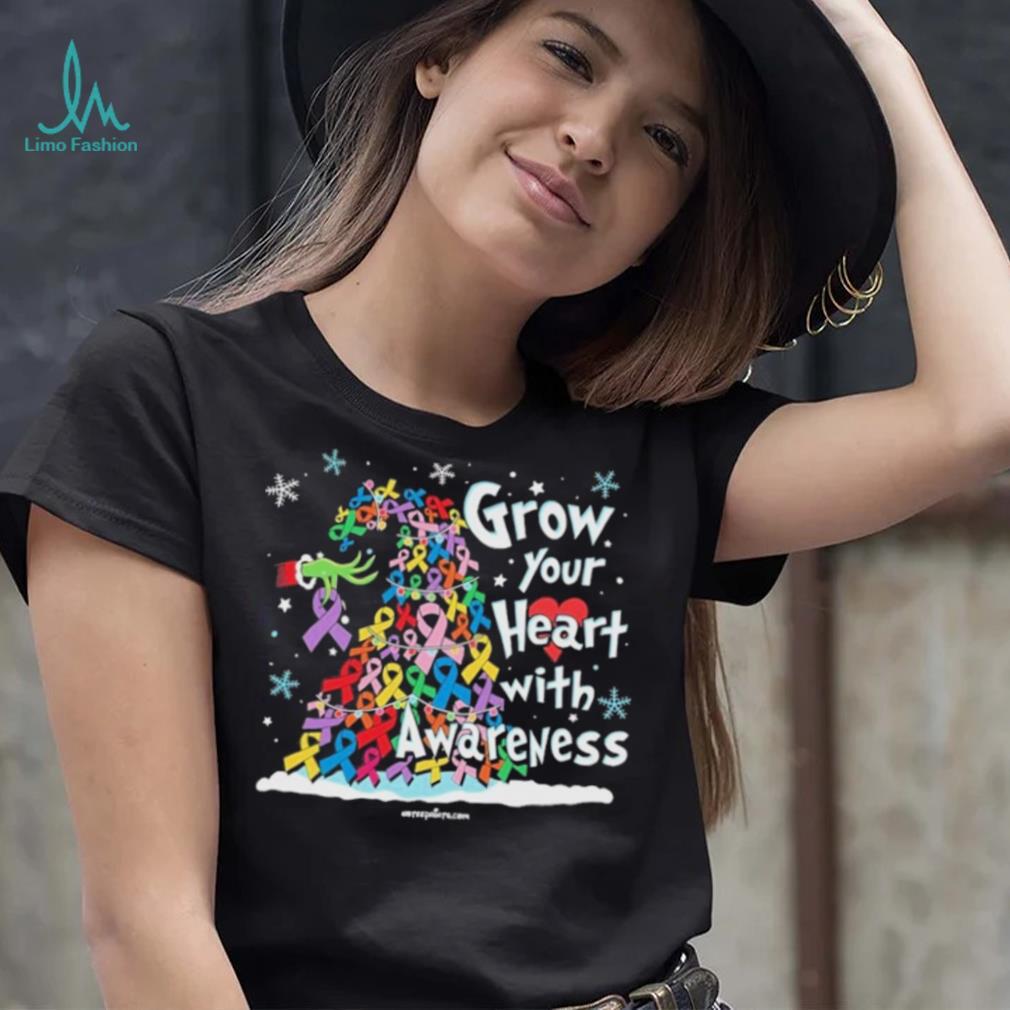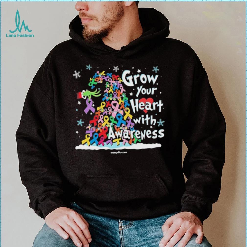 Grinch Santa Hug Cancer Grow Your Heart With Awareness Tree Merry Christmas Shirt